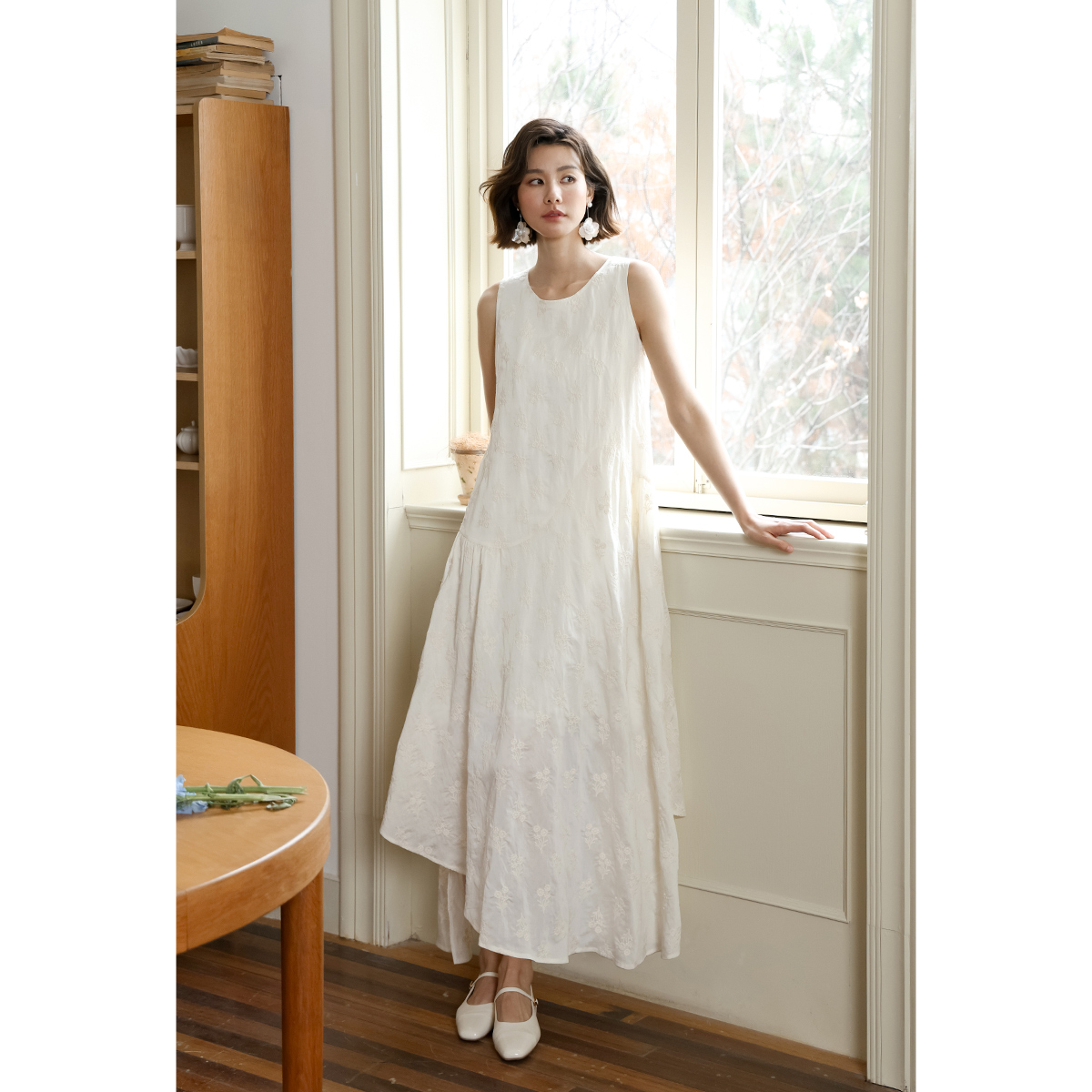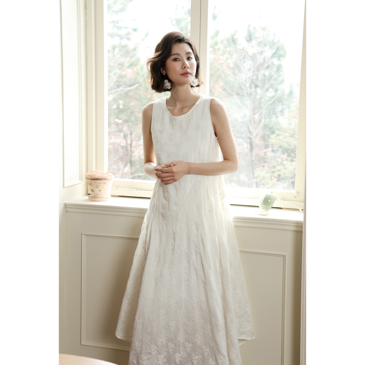 弥古2025夏季新款海边度假连衣裙不规则仙女裙女高级感绣花背心裙