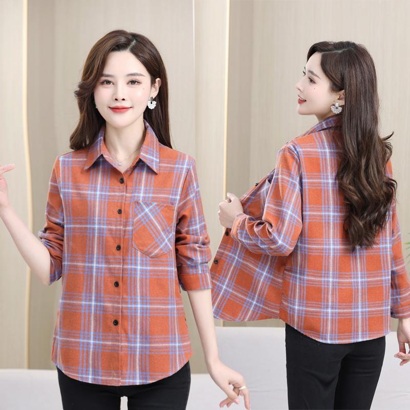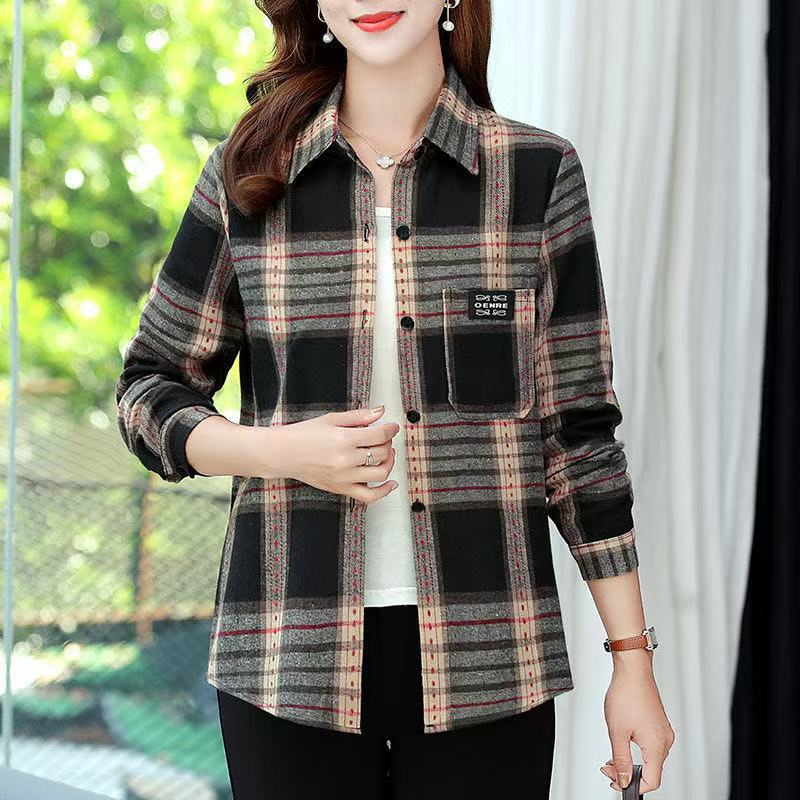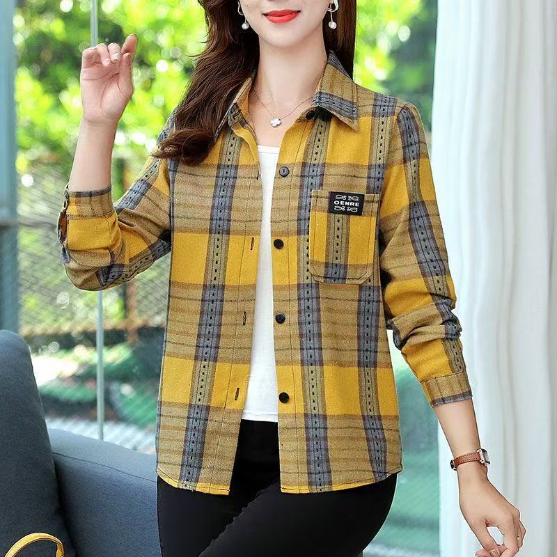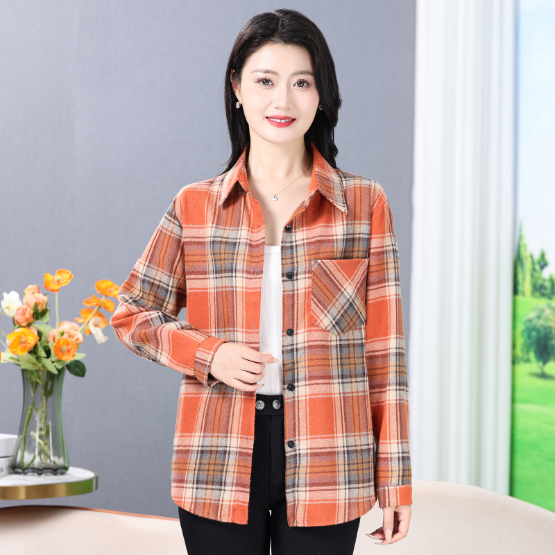 春秋妈妈纯棉衬衫女中年春秋长袖薄款夏季防晒衬衣宽松休闲格子衫
