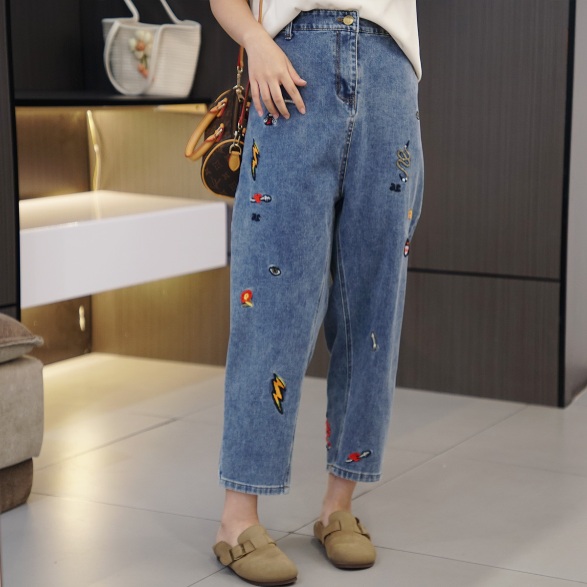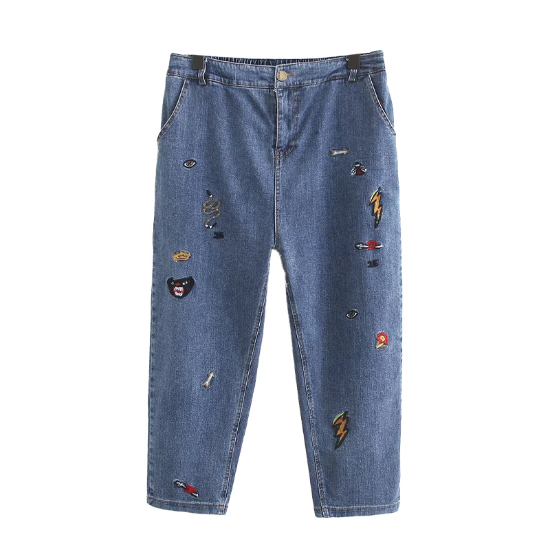 2024新款大码高腰重工刺绣九分牛仔裤 200斤胖mm百搭显瘦直筒女裤