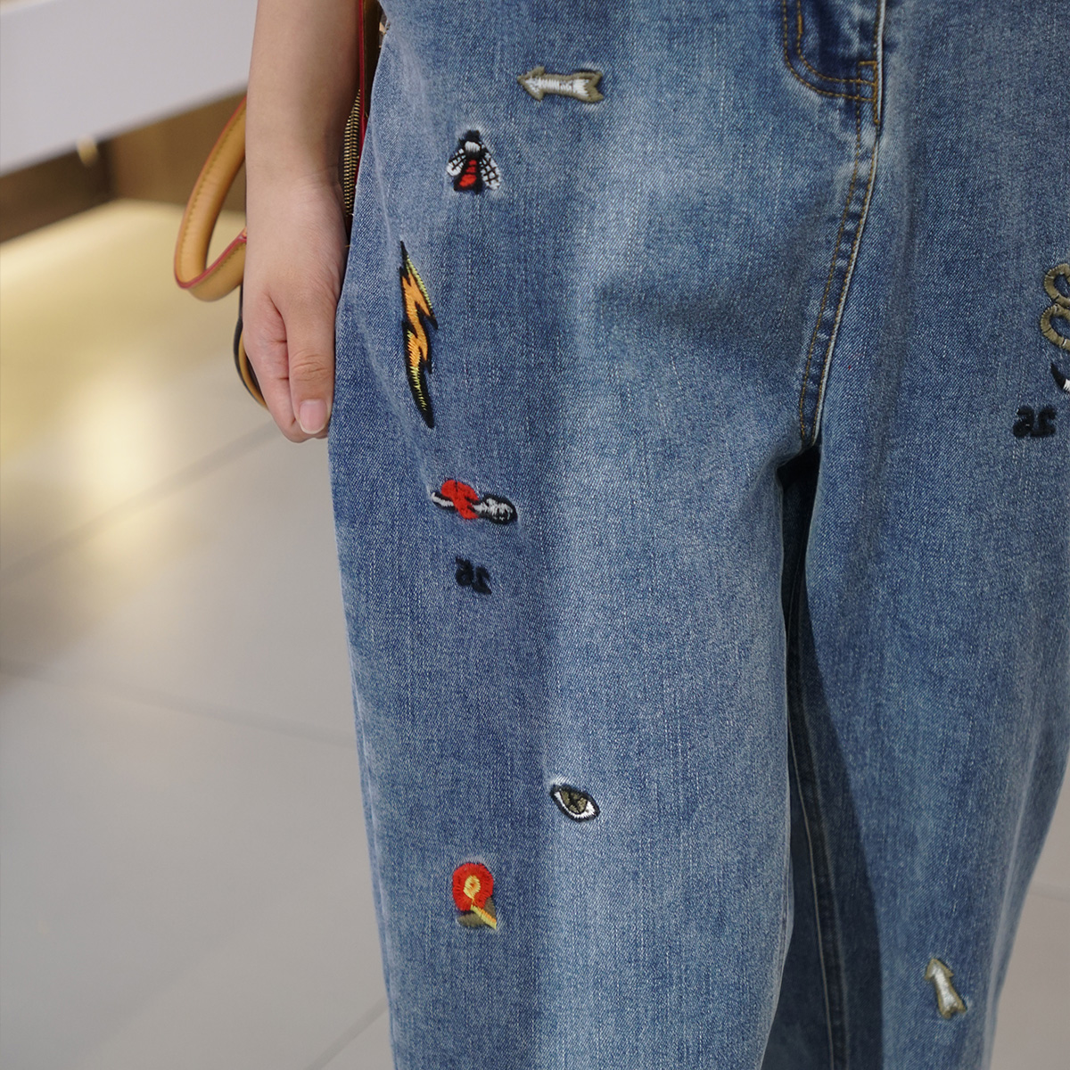 闭眼入高腰遮肉重工刺绣九分裤