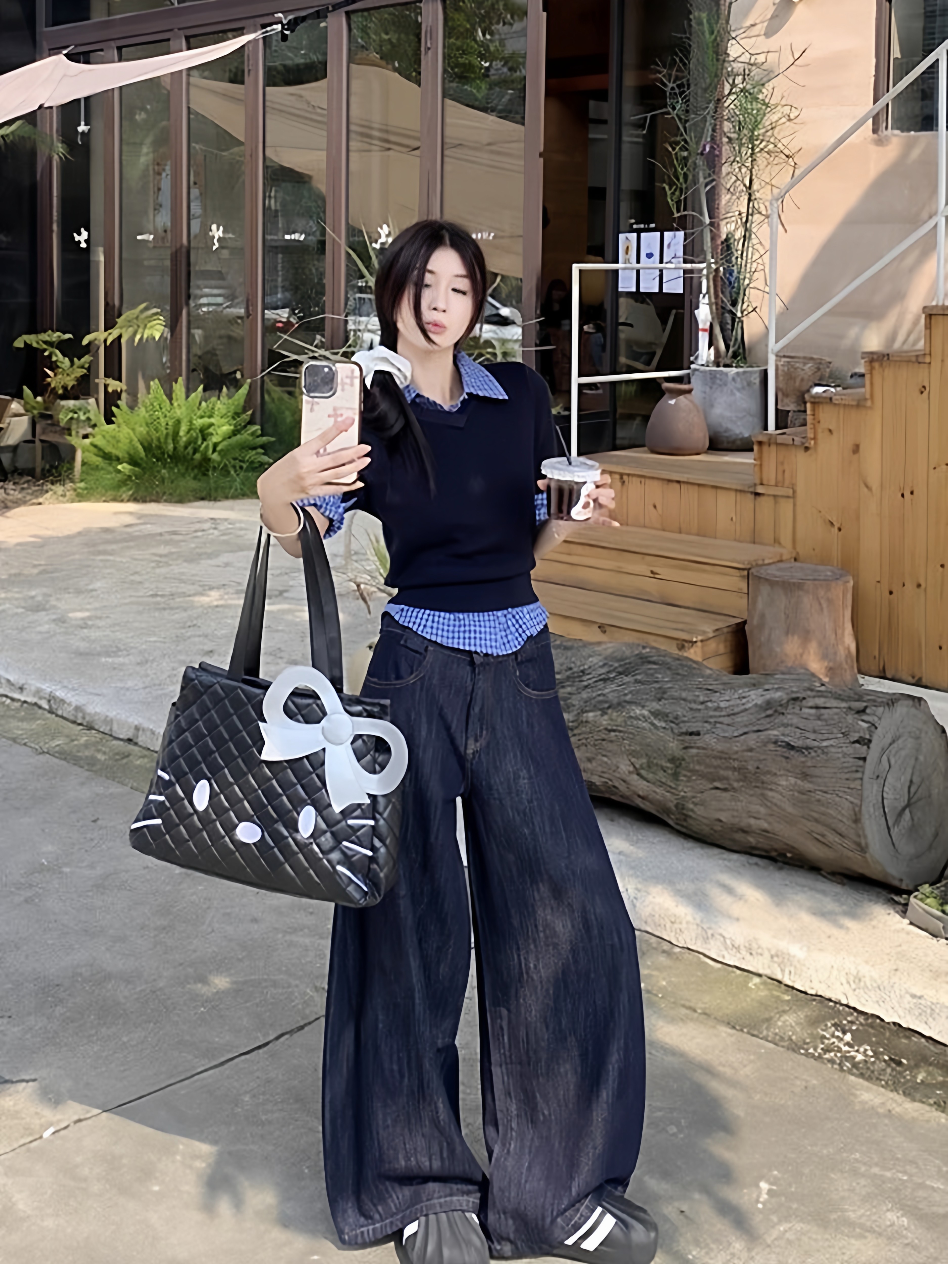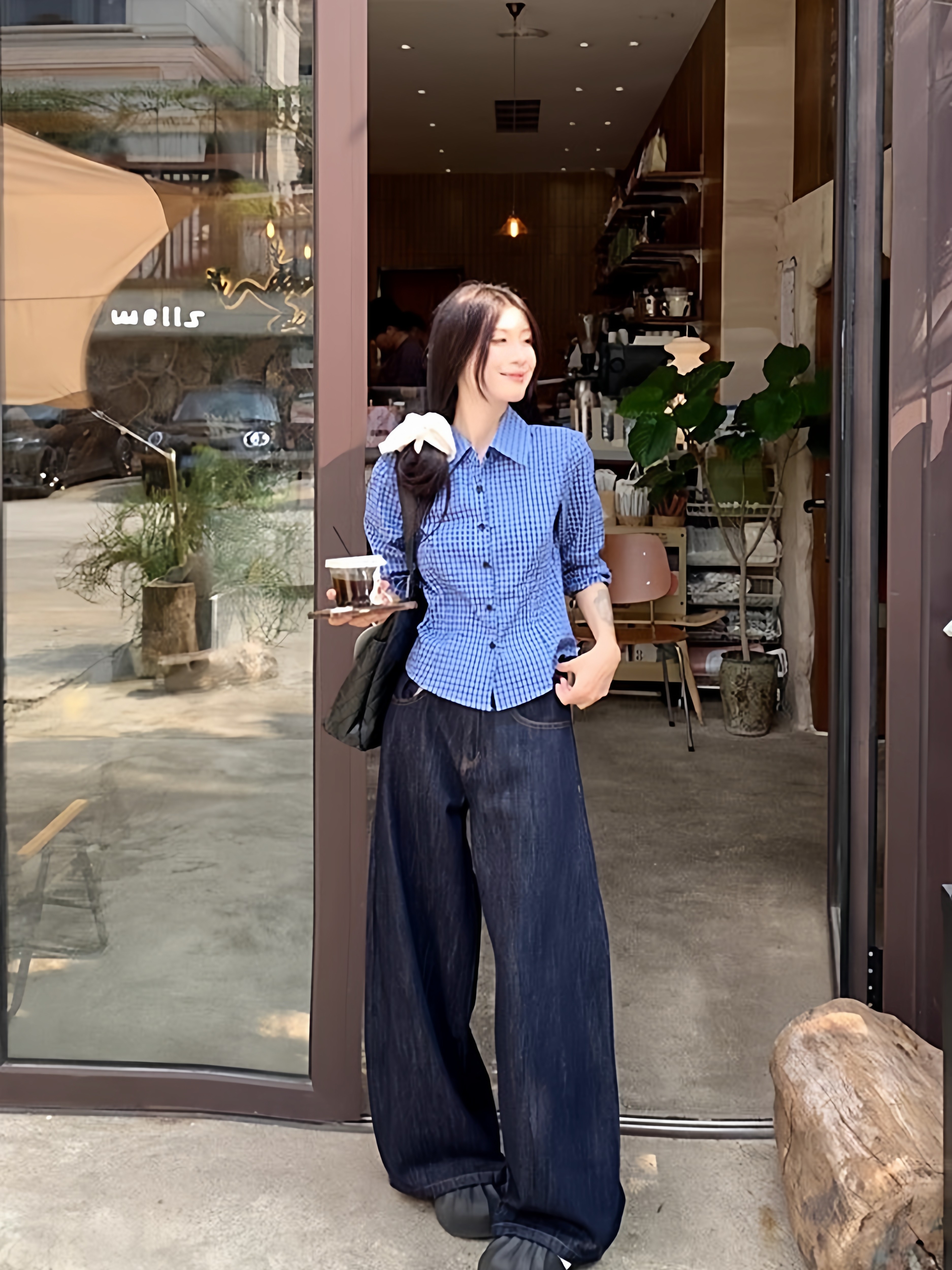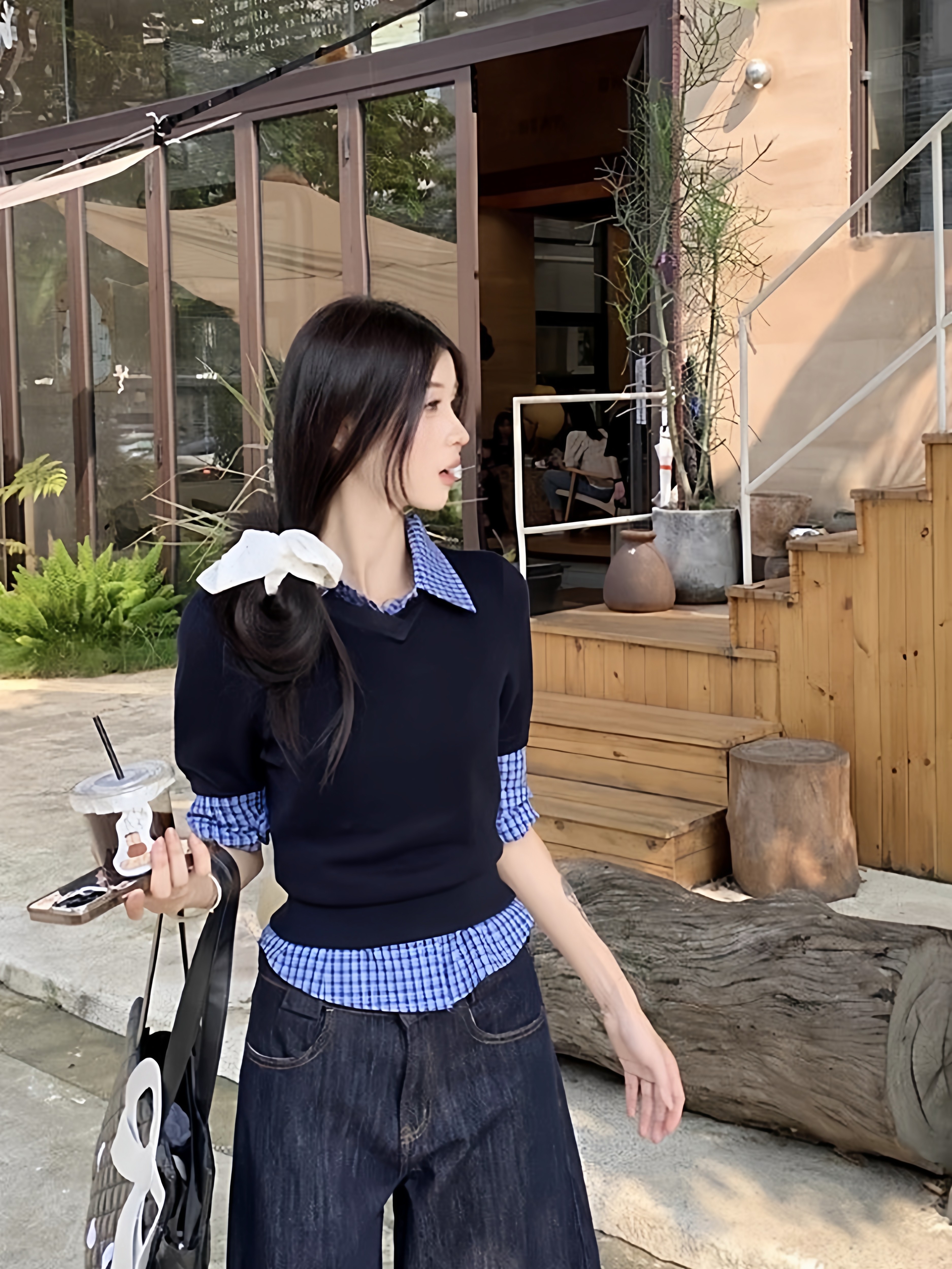 韩系穿搭长袖衬衫女格子小众修身显瘦复古学院风叠穿衬衣百搭上衣