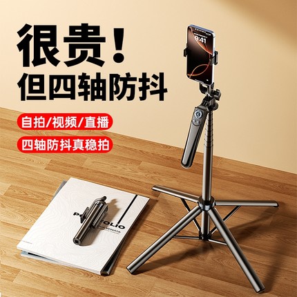 真四轴防抖2025新款自拍杆落地三脚架手机拍照直播支架旅游便携自拍神器360度旋转手持演唱会视频通用拍摄架