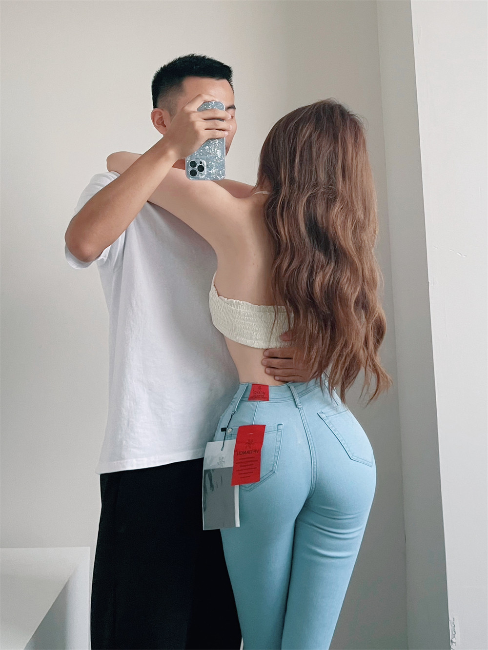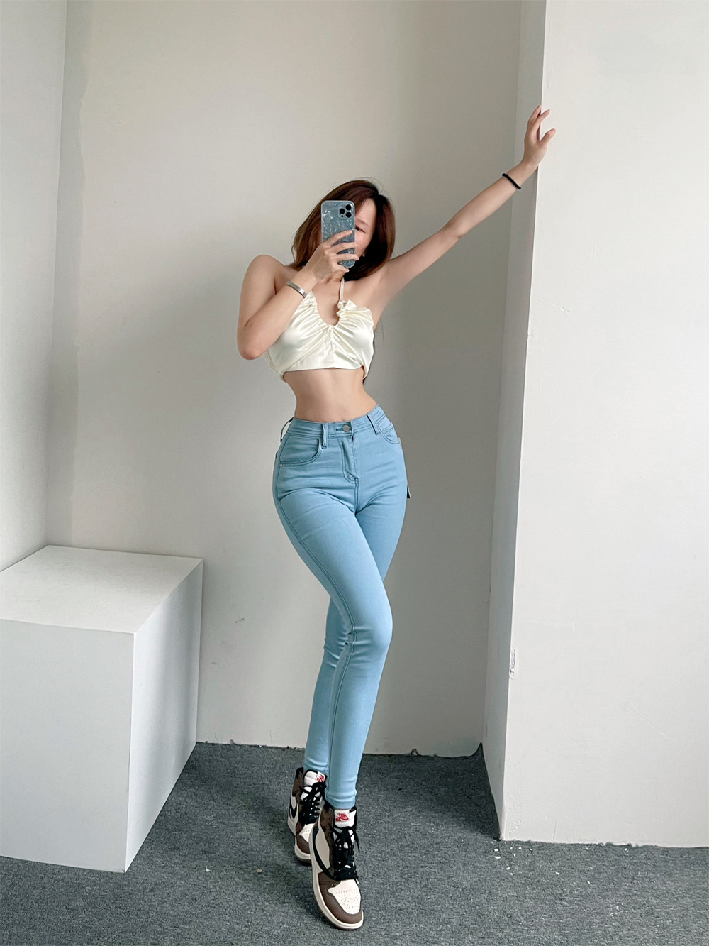 辣妹秋季新款蓝色高腰高弹力牛仔长裤女紧身复古aa提臀小脚铅笔裤