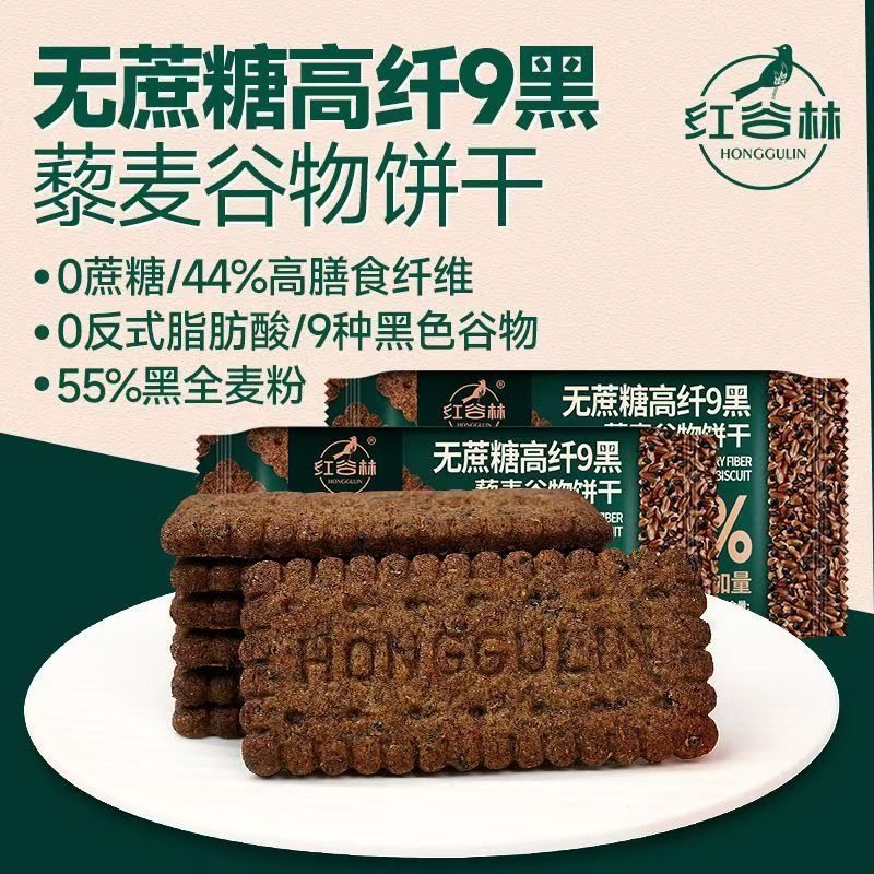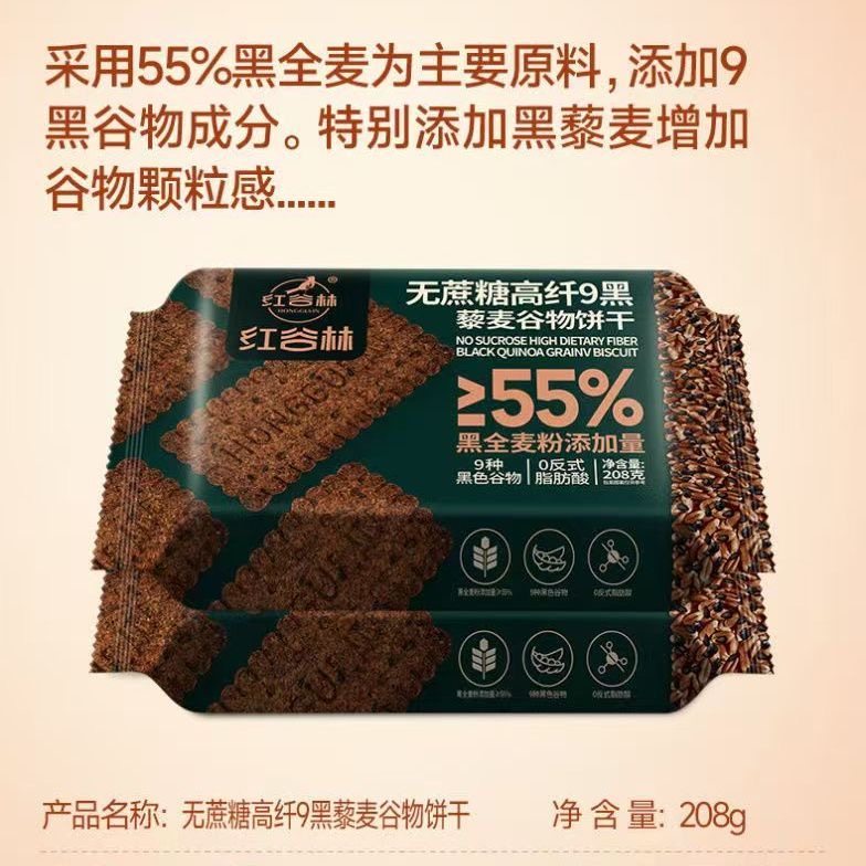 红谷林无蔗糖高纤9黑9红藜麦谷物饼干零食全麦代早餐饼干粗粮饼干