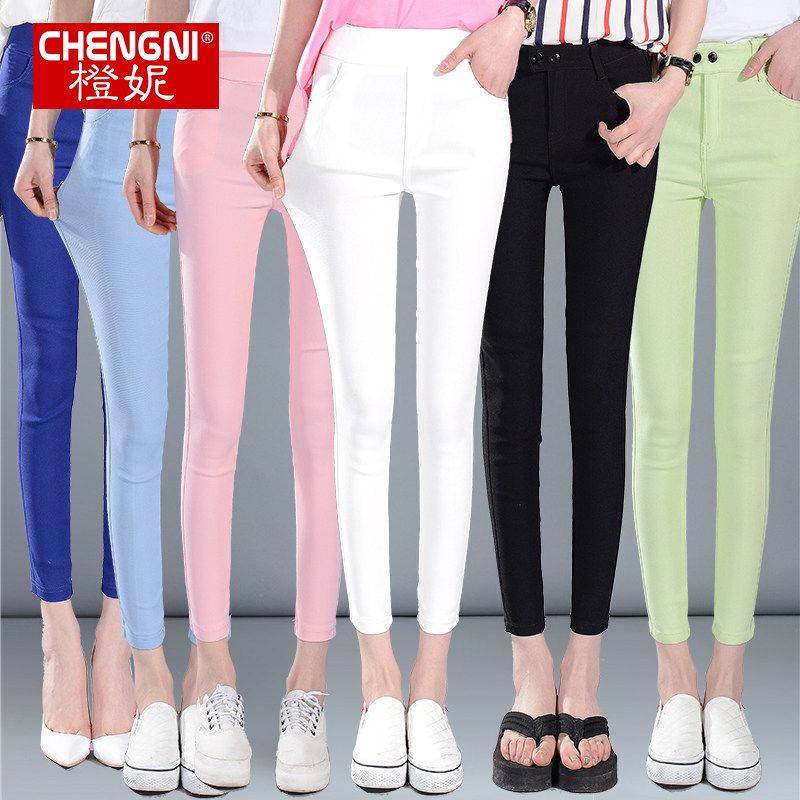 2021新款打底裤女夏季薄款外穿高腰弹力小脚铅笔九分紧身休闲黑色