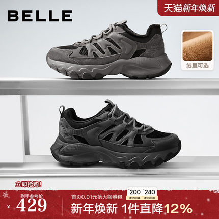 百丽男鞋厚底增高休闲老爹鞋男士新户外加绒棉鞋运动鞋A2198CM5