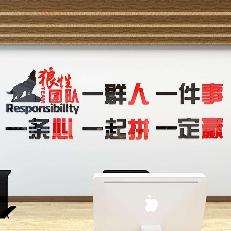 狼性团队文d化墙贴纸3d立体公司企业励志标语办公室装饰背景布置