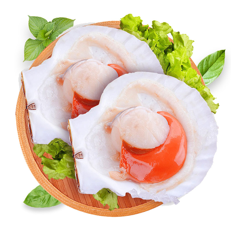 虾夷大扇贝带壳超大冷冻半壳扇贝肉烧烤海水产蒜蓉粉丝大元贝2斤