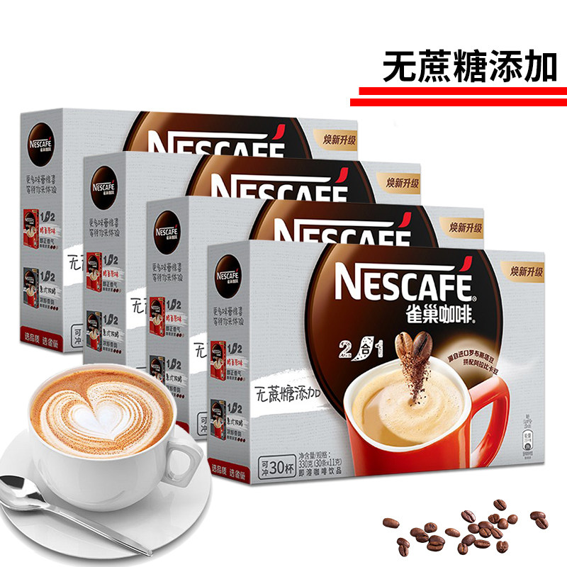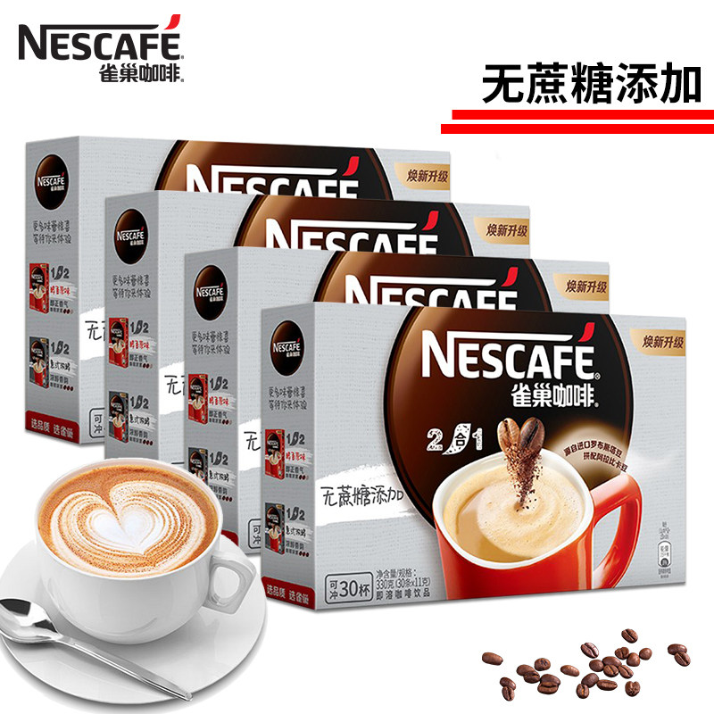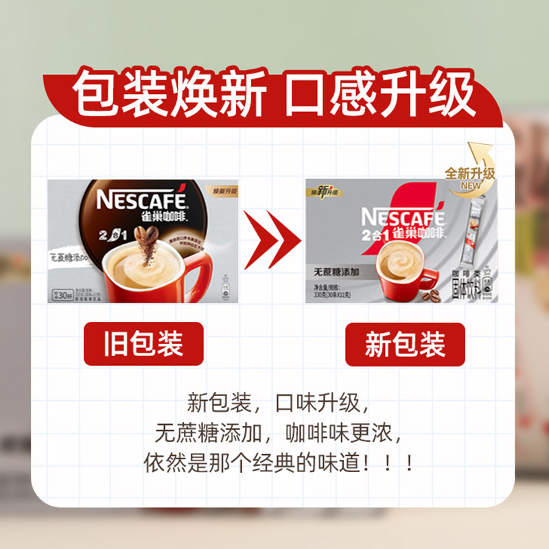 雀巢咖啡无蔗糖添加二合一咖啡提神速溶咖啡粉120条装官方旗舰店