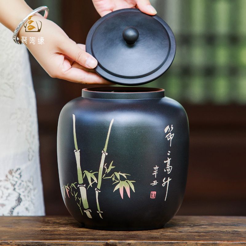 建水紫陶茶叶罐陶瓷密封罐防潮防霉存普洱茶散茶罐醒茶罐家用小号