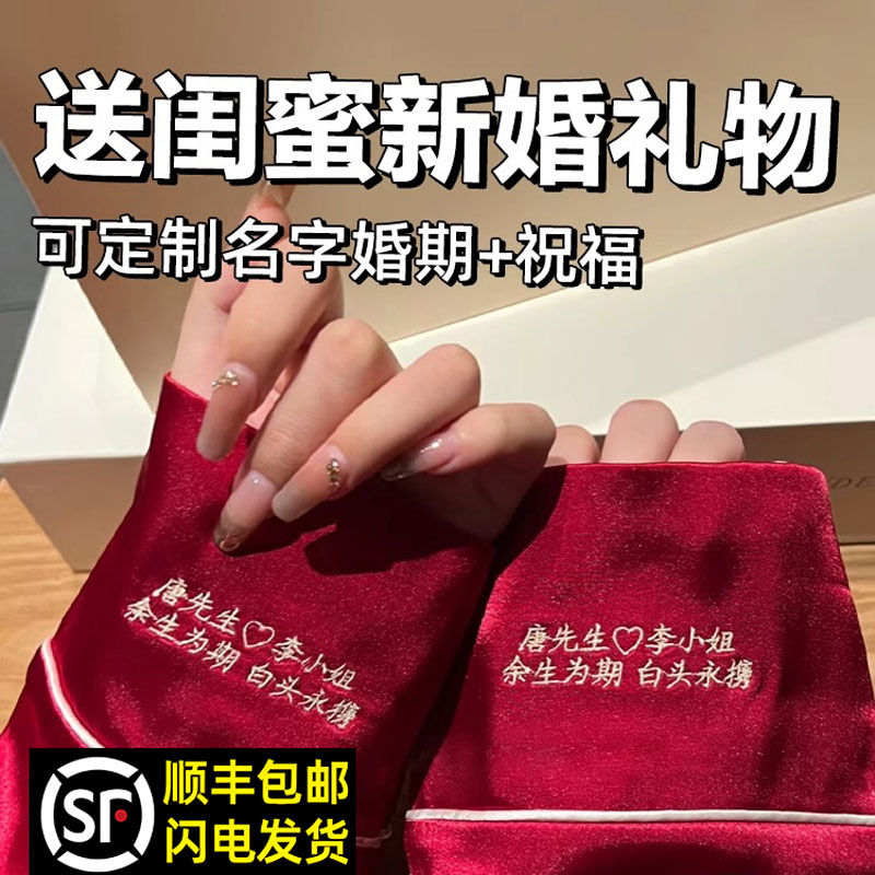 情侣睡衣结婚红色长袖套装家居服婚庆刺绣定制送男女朋友生日礼物
