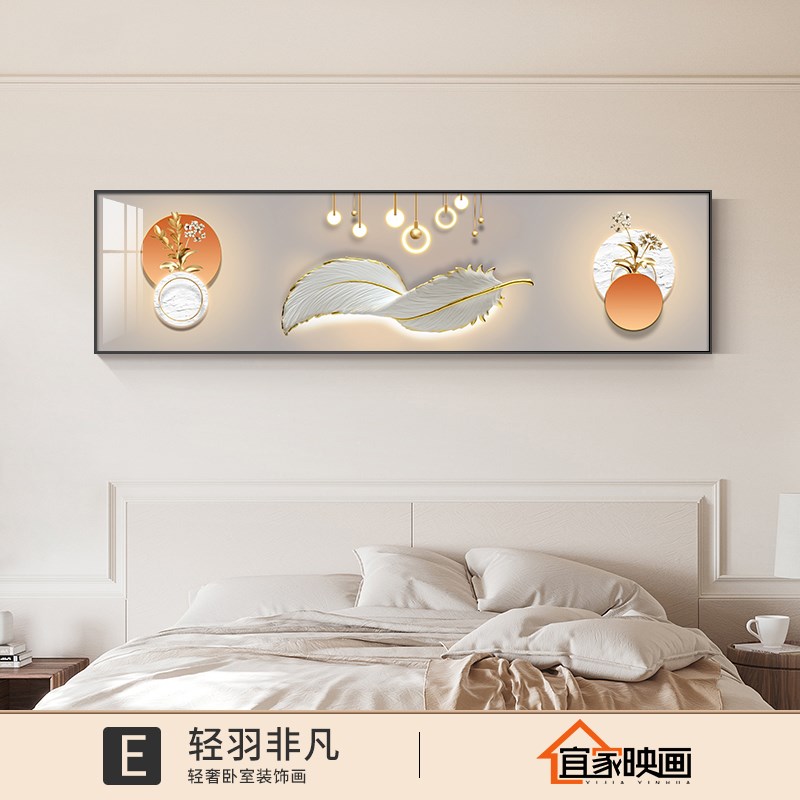 轻奢卧室装饰画高档羽毛床头挂画横幅现代简约大气主卧背景墙壁画