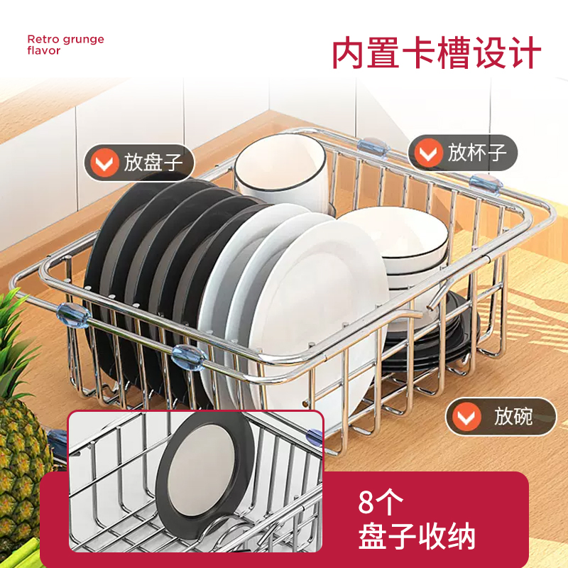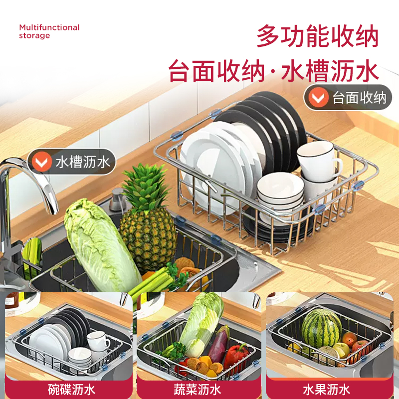 厨房水槽置物架不锈钢伸缩沥水篮