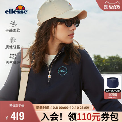 ellesse小贝壳秋冬立领空气层卫衣短款网球运动休闲外套女士