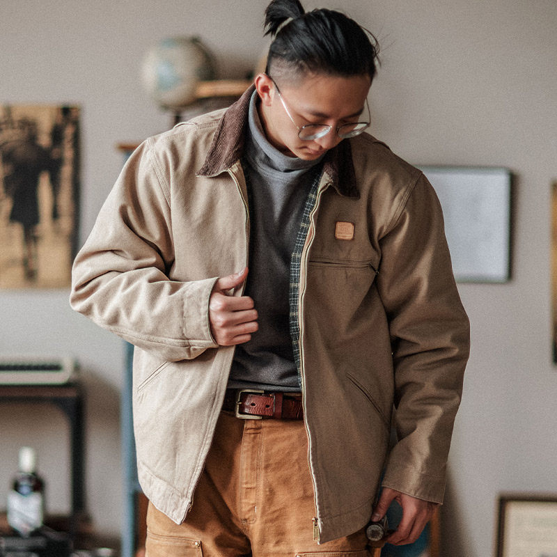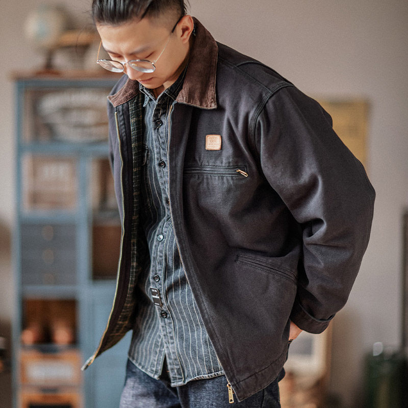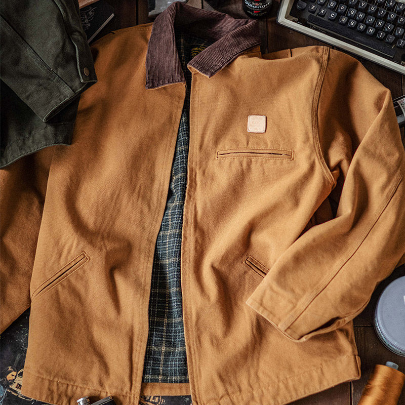 靛海美式复古底特律工装夹克男j001重磅水洗帆布做旧宽松外套秋冬