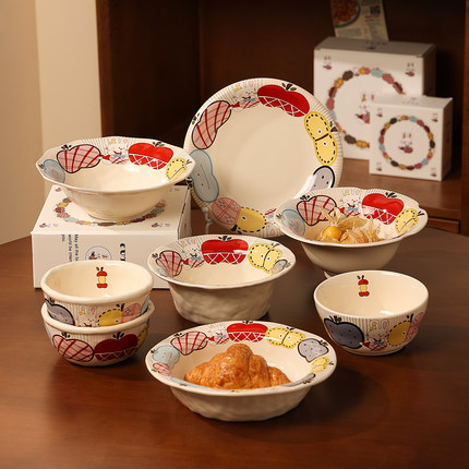 可爱苹果兔子陶瓷餐具家用米饭碗酸奶碗面碗沙拉碗女生高颜值餐盘