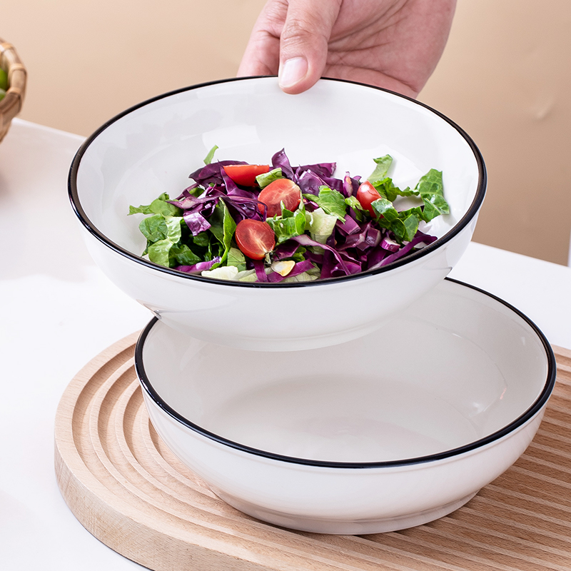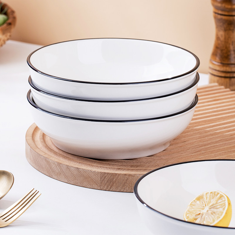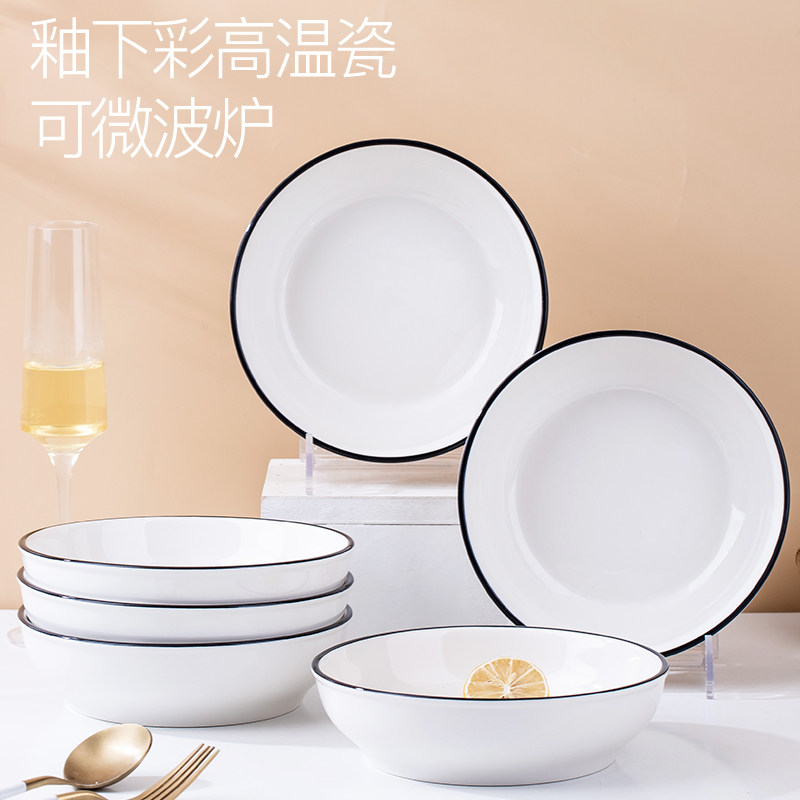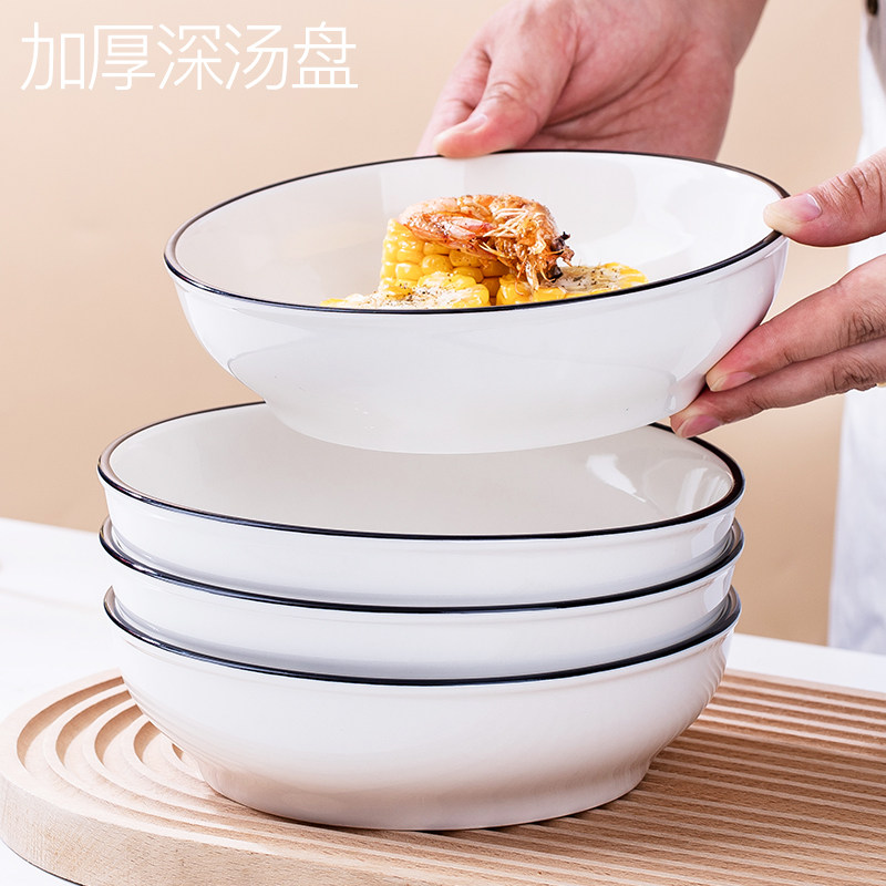 新款深汤盘4个装陶瓷圆盘菜盘子家用 北欧风餐具简约水果盘早餐盘