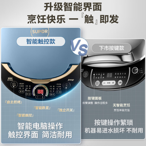 苏泊尔电饼铛上下盘可拆洗双面加热多功能蒸汽煎烤机JD30RQ859