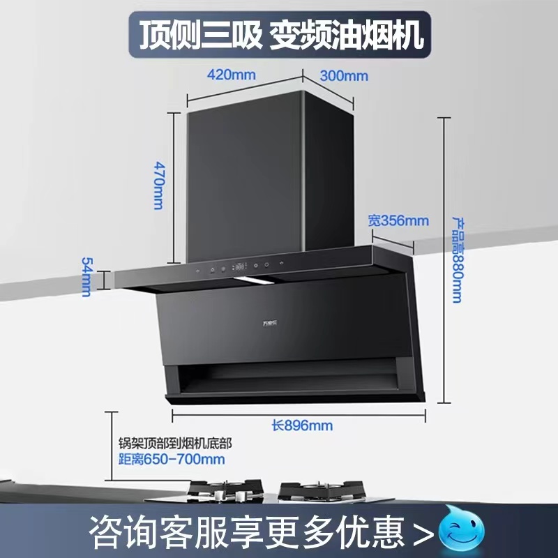 [政府补贴]万家乐TAK8顶侧三吸抽油烟机家用7字变频顶吸烟灶联动