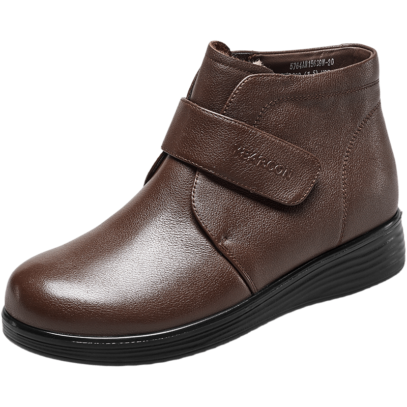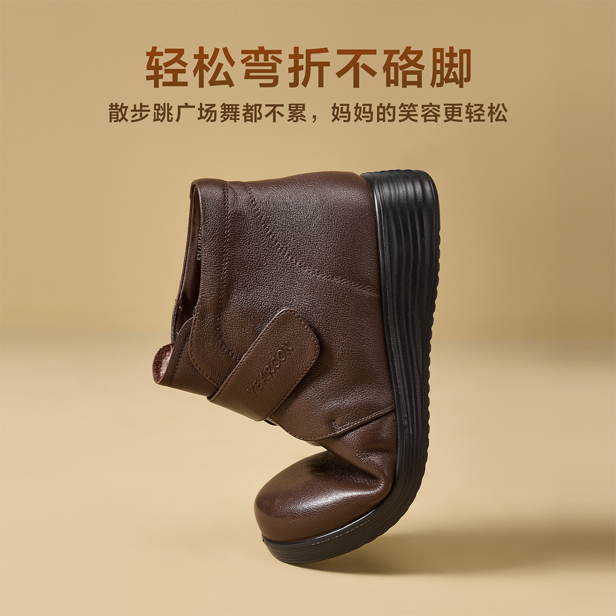 意尔康女鞋2025冬季短靴真皮短筒皮靴中老年妈妈棉鞋加绒奶奶皮鞋
