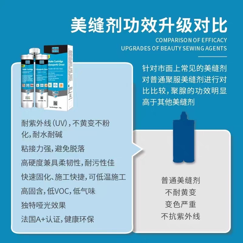 雷帝恒彩纯聚脲彩砂天冬哑光美缝剂耐黄变厨卫瓷砖防水填缝勾缝