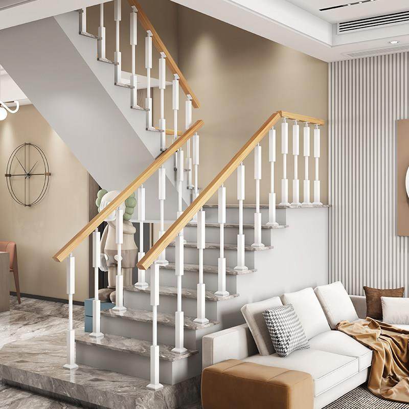 轻奢楼梯扶手护栏儿童安全围栏立柱简约家用欧式室内铁艺实木栏杆
