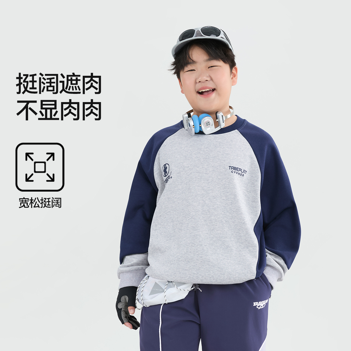 【插肩袖潮搭卫衣】小猪托尼胖男童撞色上衣中大童加肥加大休闲秋