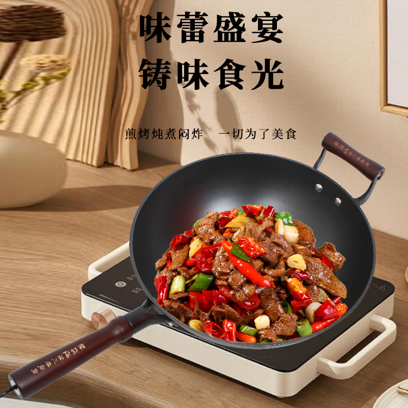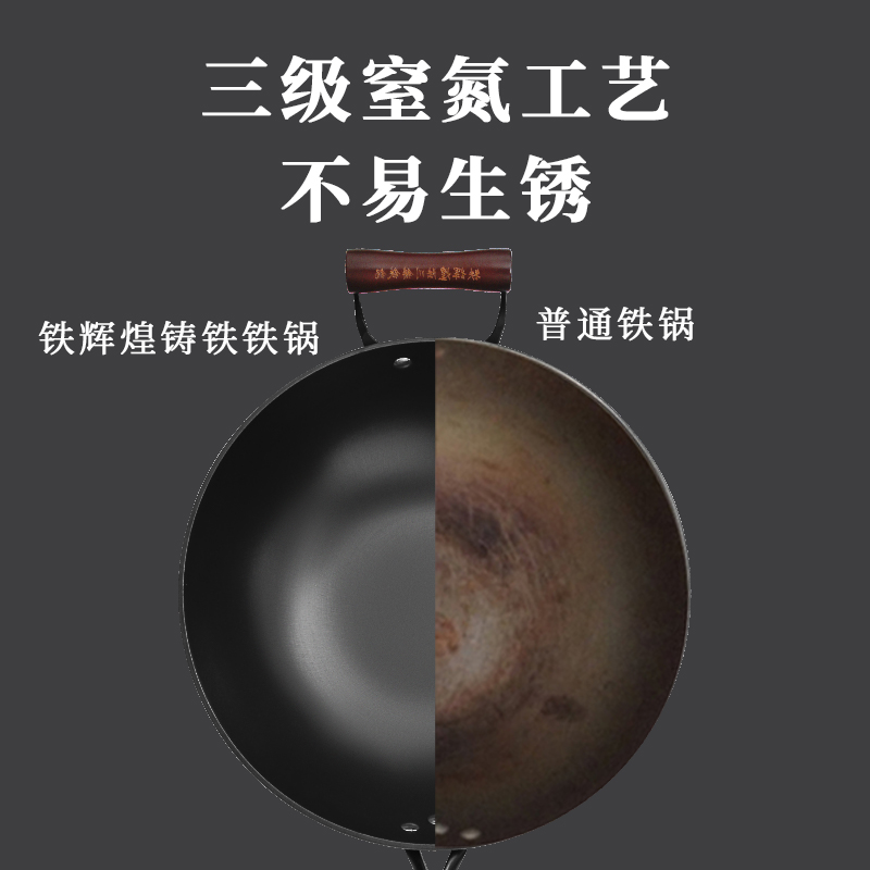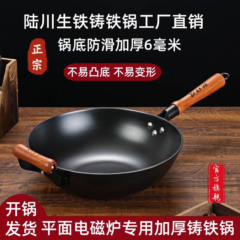 陆川生铁铸铁锅旗舰无涂层加厚平底锅家用炒菜锅电磁炉专用锅不粘