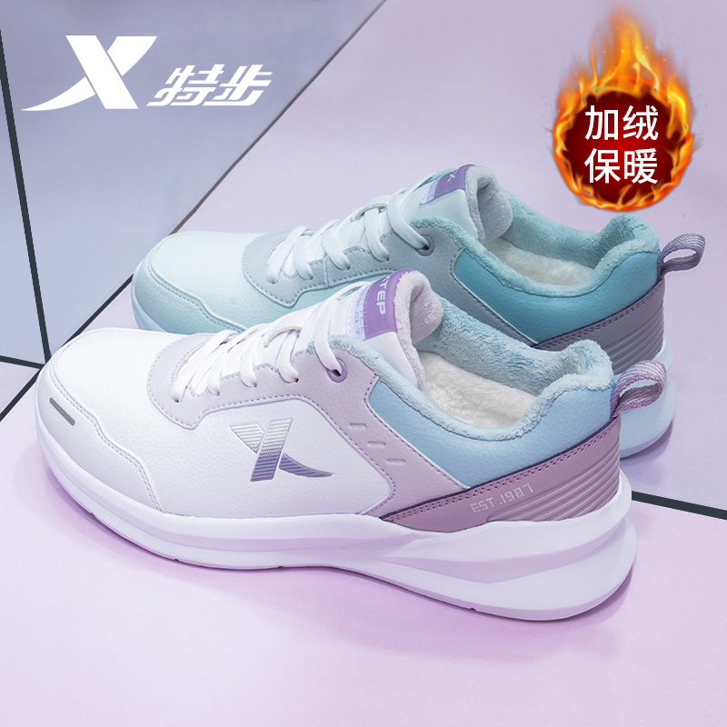 特步女鞋老爹鞋2025新款夏季加绒保暖棉鞋跑步鞋官方旗舰运动鞋女