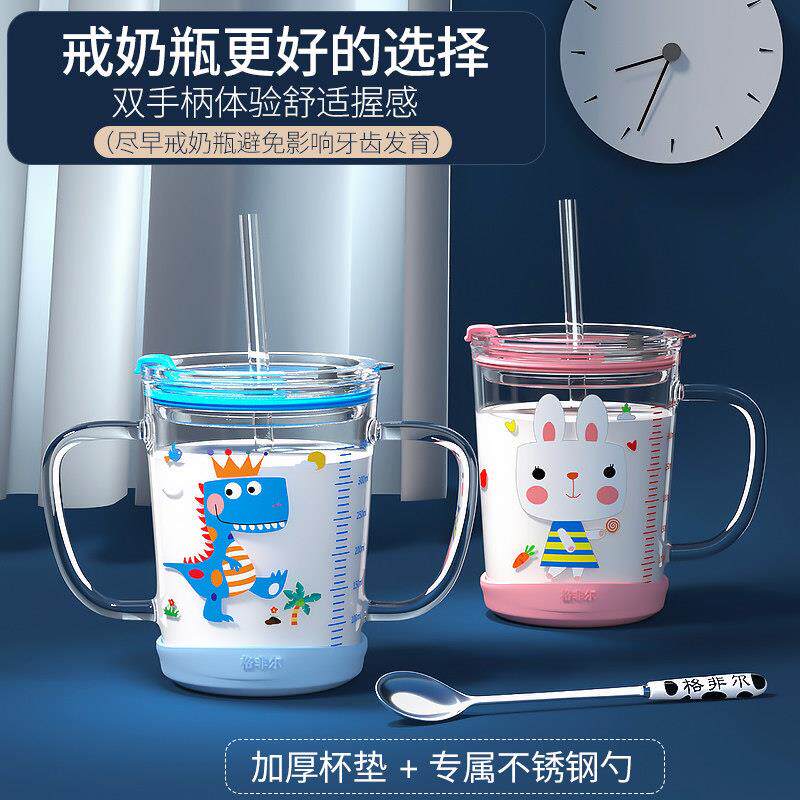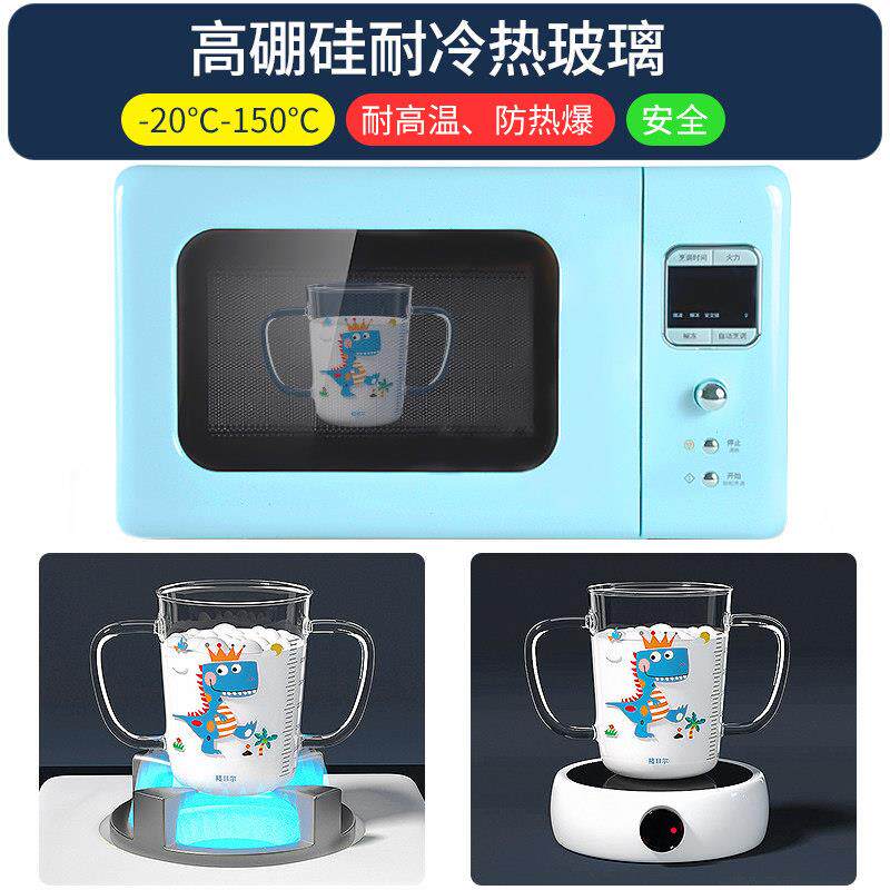 儿童牛奶杯带刻度玻璃喝奶吸管杯微波炉可高温加热宝宝冲奶粉专用