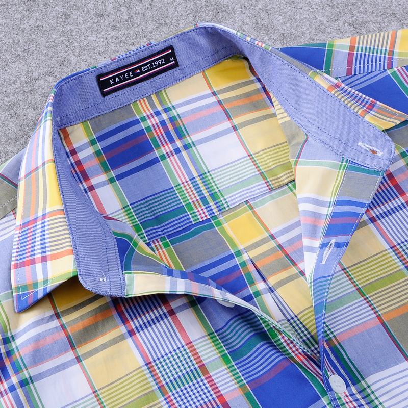 【特惠款】嘉意男士格子衬衣短袖休闲纯棉修身衬衫夏威夷风A59025