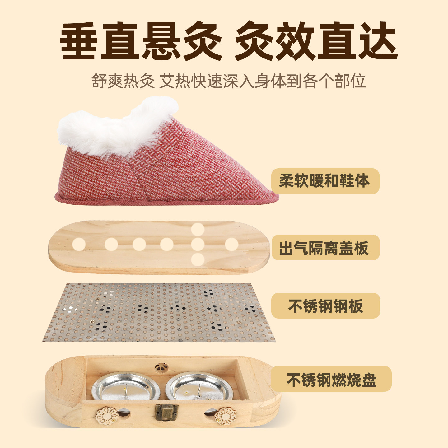 艾灸鞋足底艾灸盒家用随身灸热敷足底部棉拖鞋暖足懒人实木足灸箱