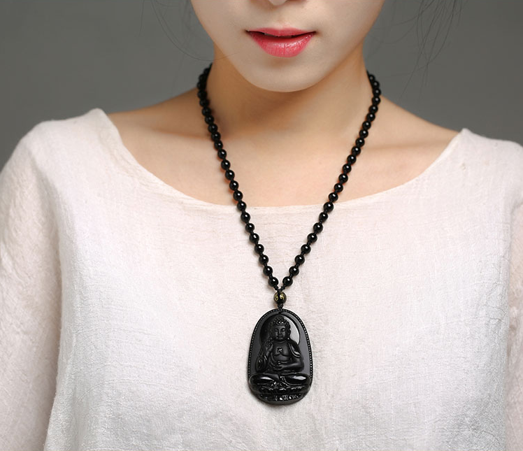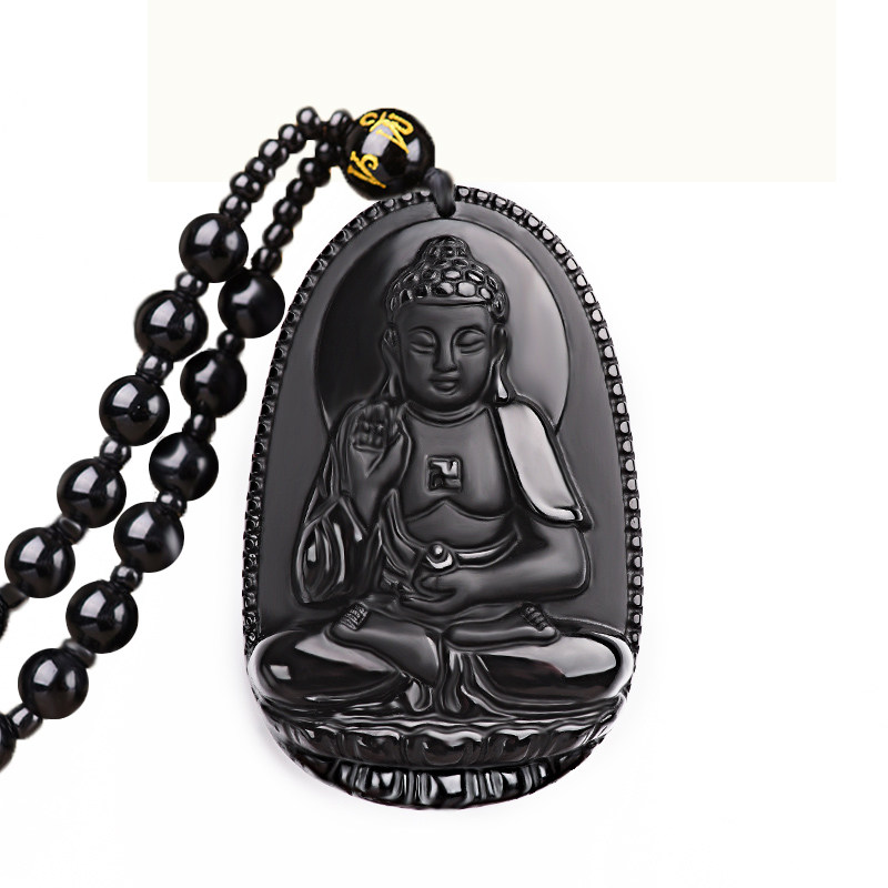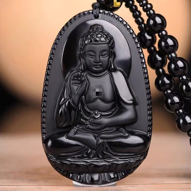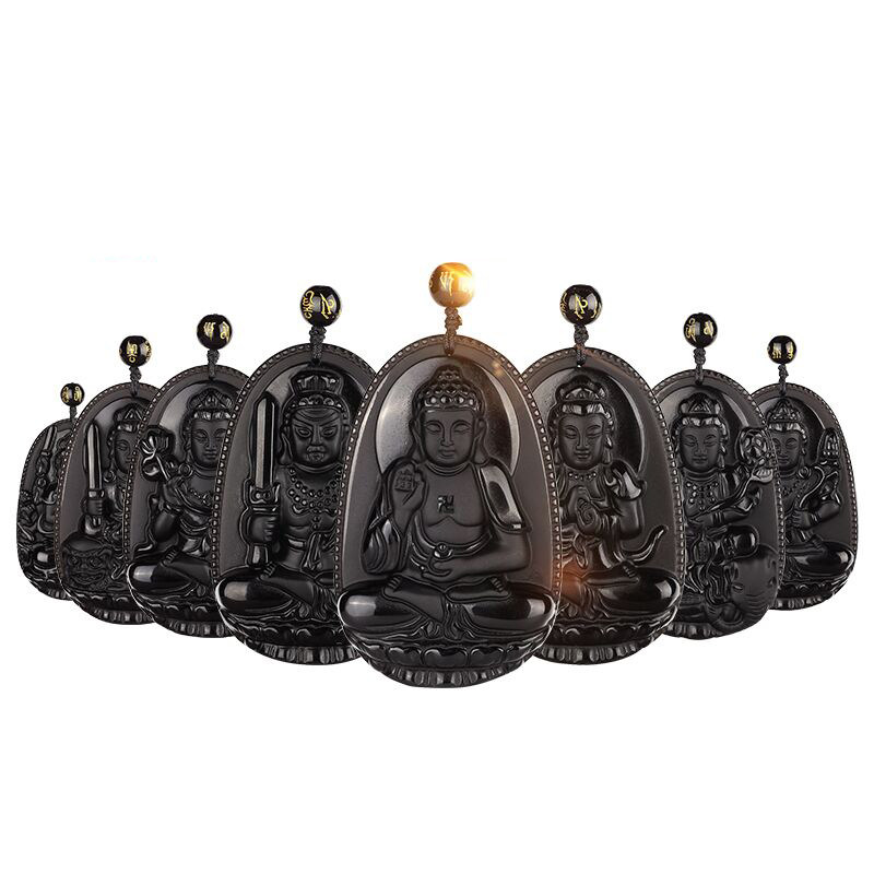 黑曜石十二生肖本命佛吊坠八大守护神玉佩观音男女款龙年招财挂件