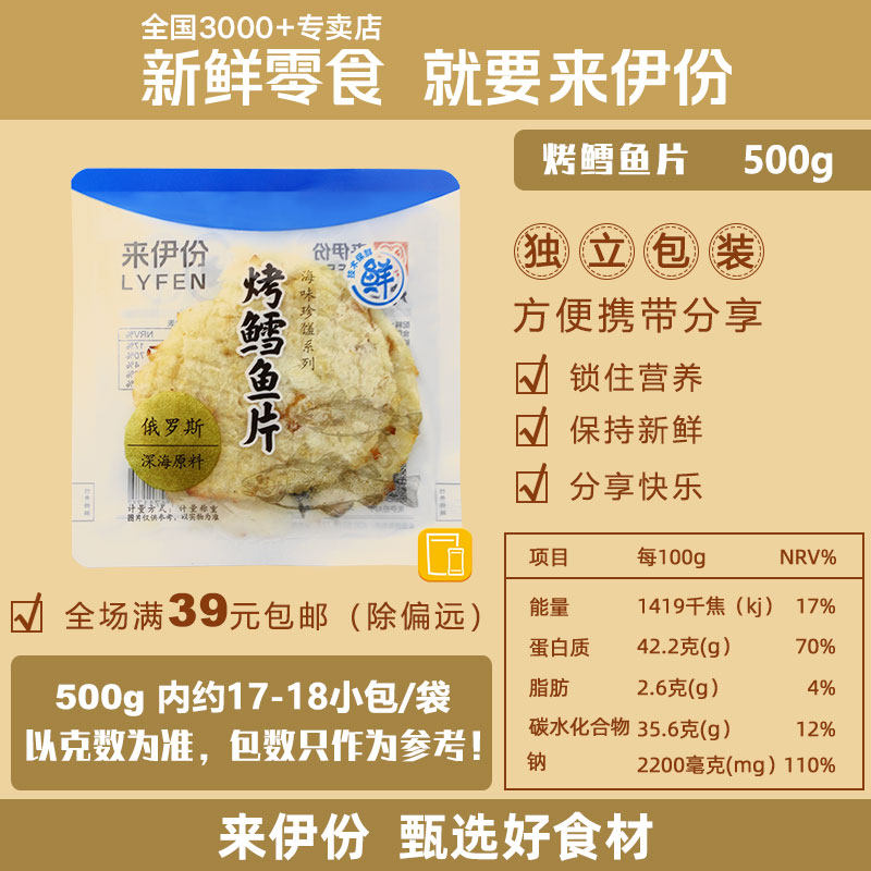 来伊份烤鳕鱼片500g休闲零食深海鲜味即食特产小吃烤鱼片小包散装