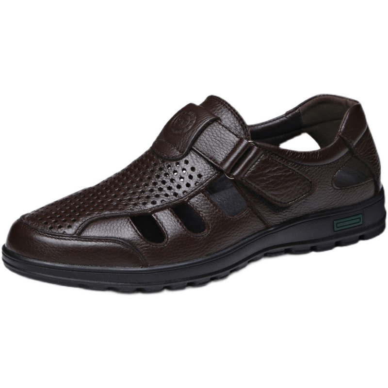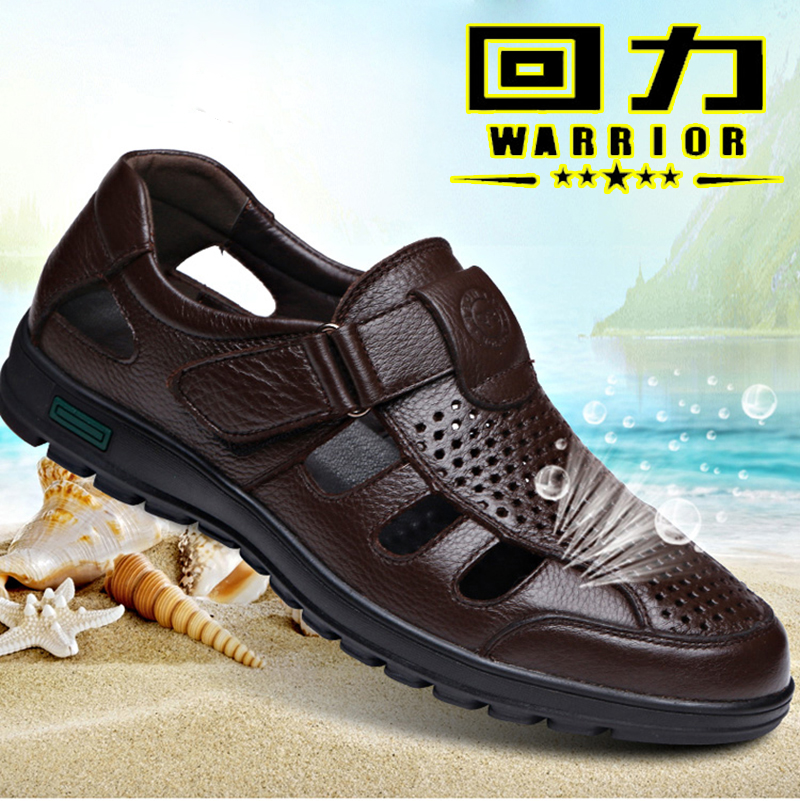 回力皮凉鞋男真皮软底镂空透气爸爸中老年人休闲洞洞凉皮鞋男夏季