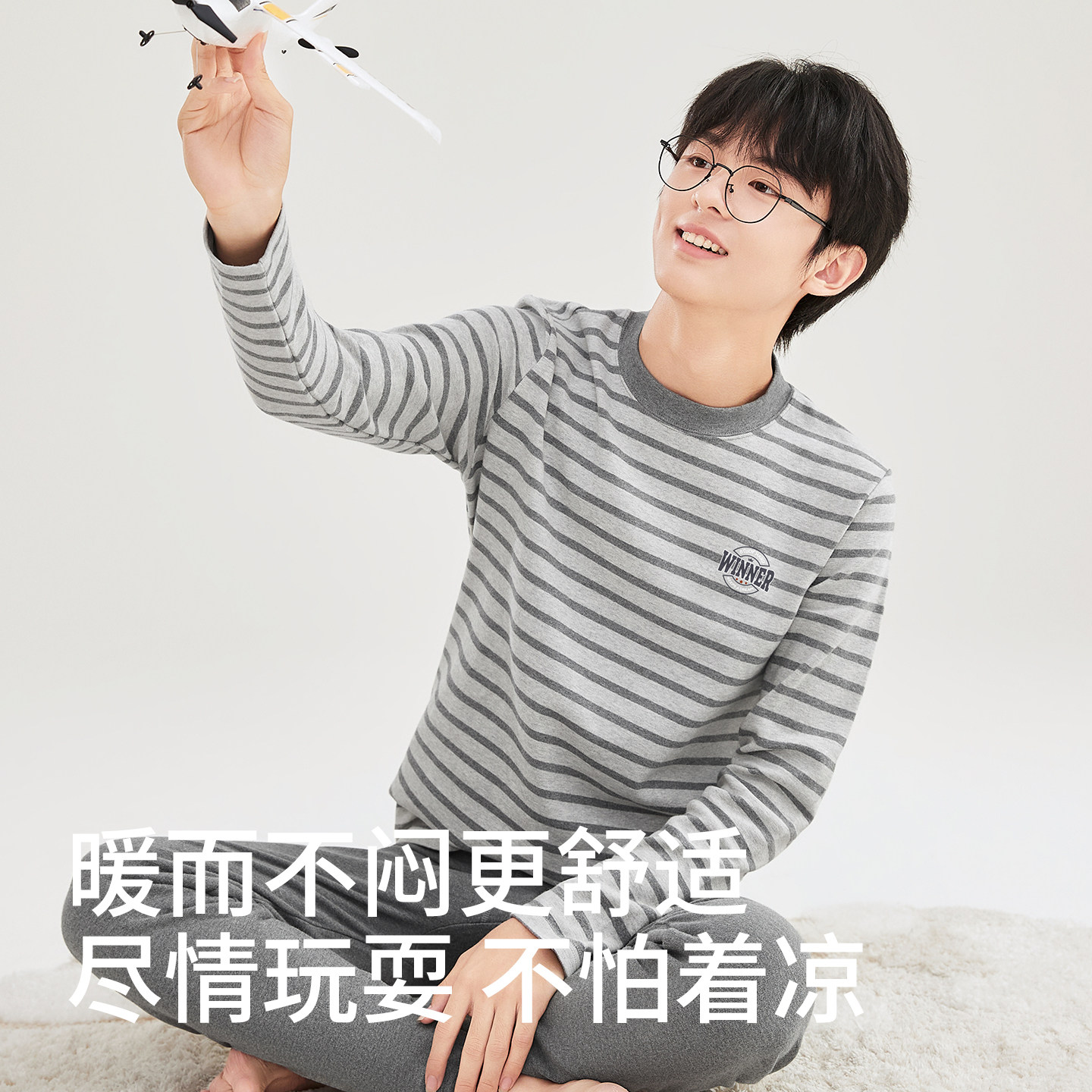 男大童纯棉中领保暖内衣单件上衣