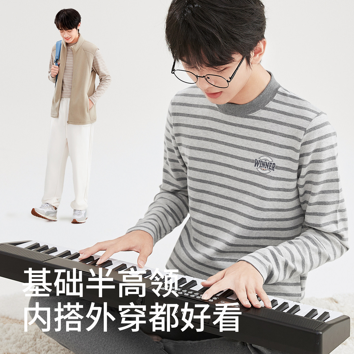 男大童纯棉中领保暖内衣初中高中学生青少年单件上衣秋衣打底衫
