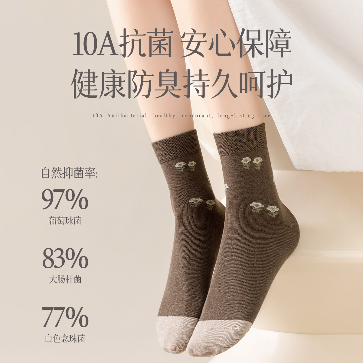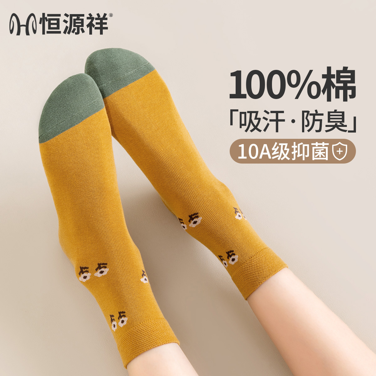 恒源祥袜子女士妈妈袜100%纯棉秋冬季中筒袜女中老年全棉防臭女袜