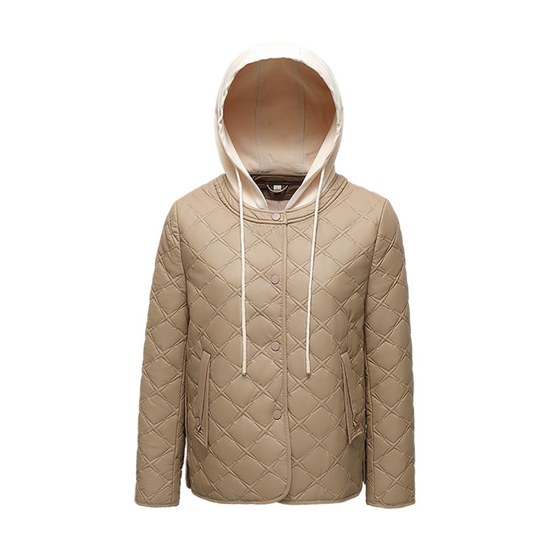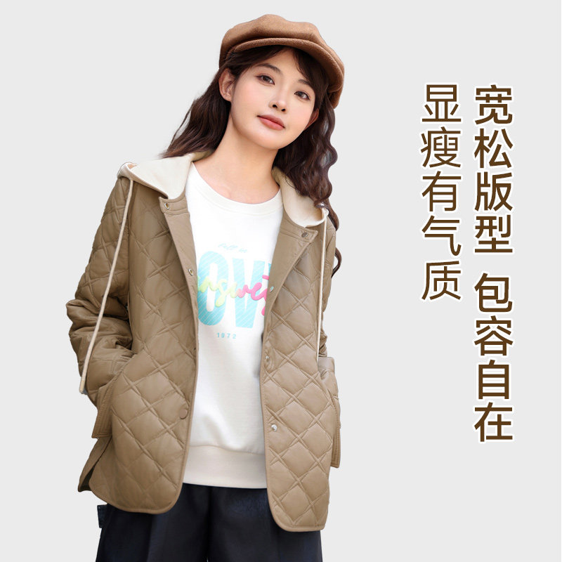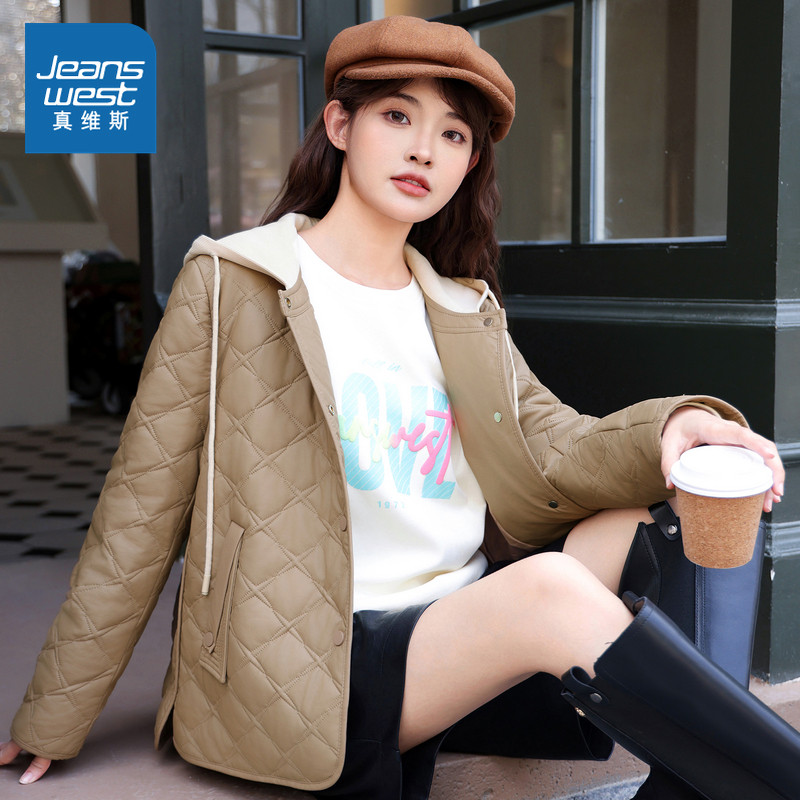 GC真维斯2025秋冬新款假两件外套女小个子时尚夹棉连帽棉服学院风
