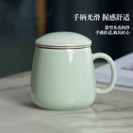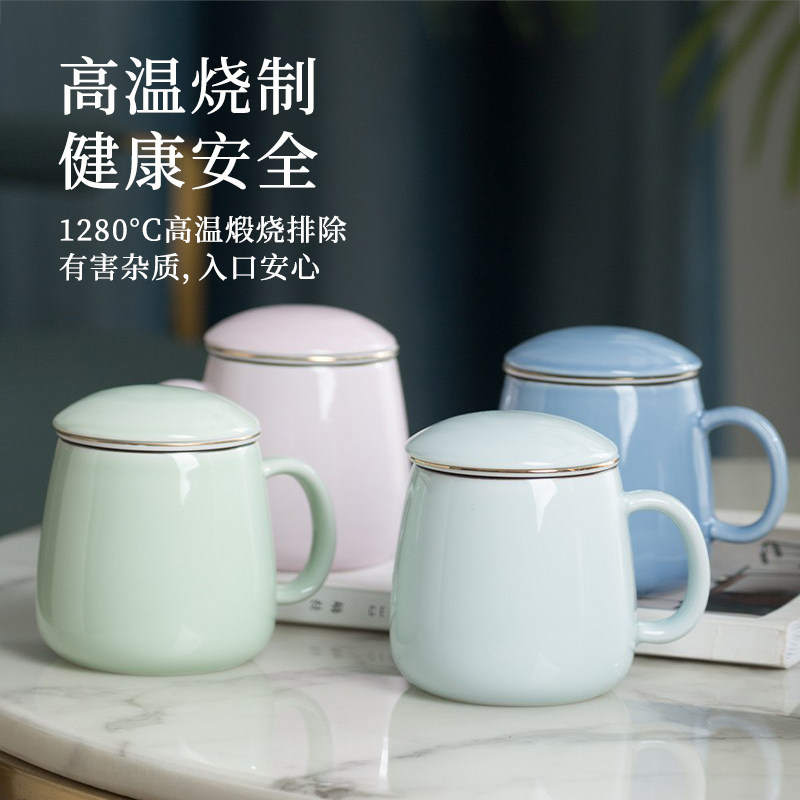 茶水分离茶杯陶瓷杯水杯马克杯办公家用带盖过滤器网红泡茶杯子