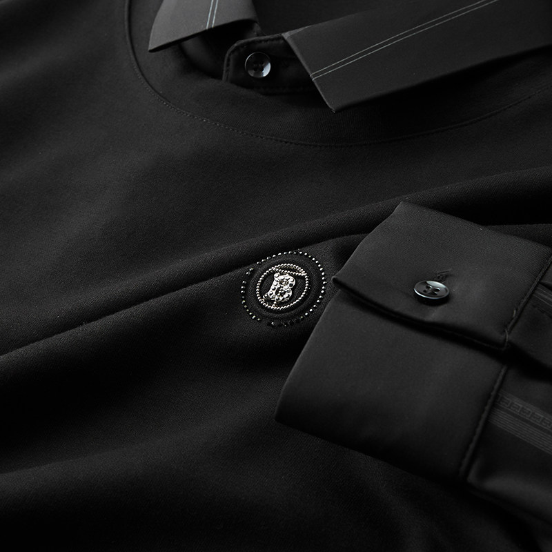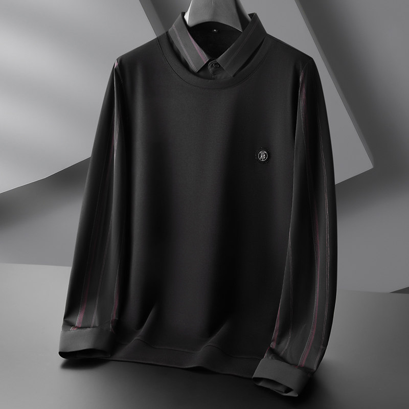 宝盾狼春秋加大码男式假二件长袖体恤大号宽松弹力免搭打底T恤衫