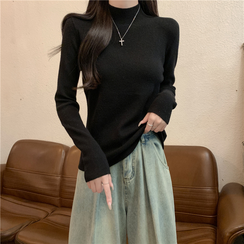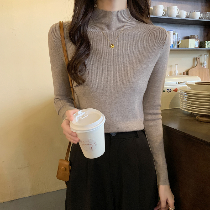 春秋冬半高领内搭长袖打底针织衫上衣气质轻熟不撞款巨好看毛衣女