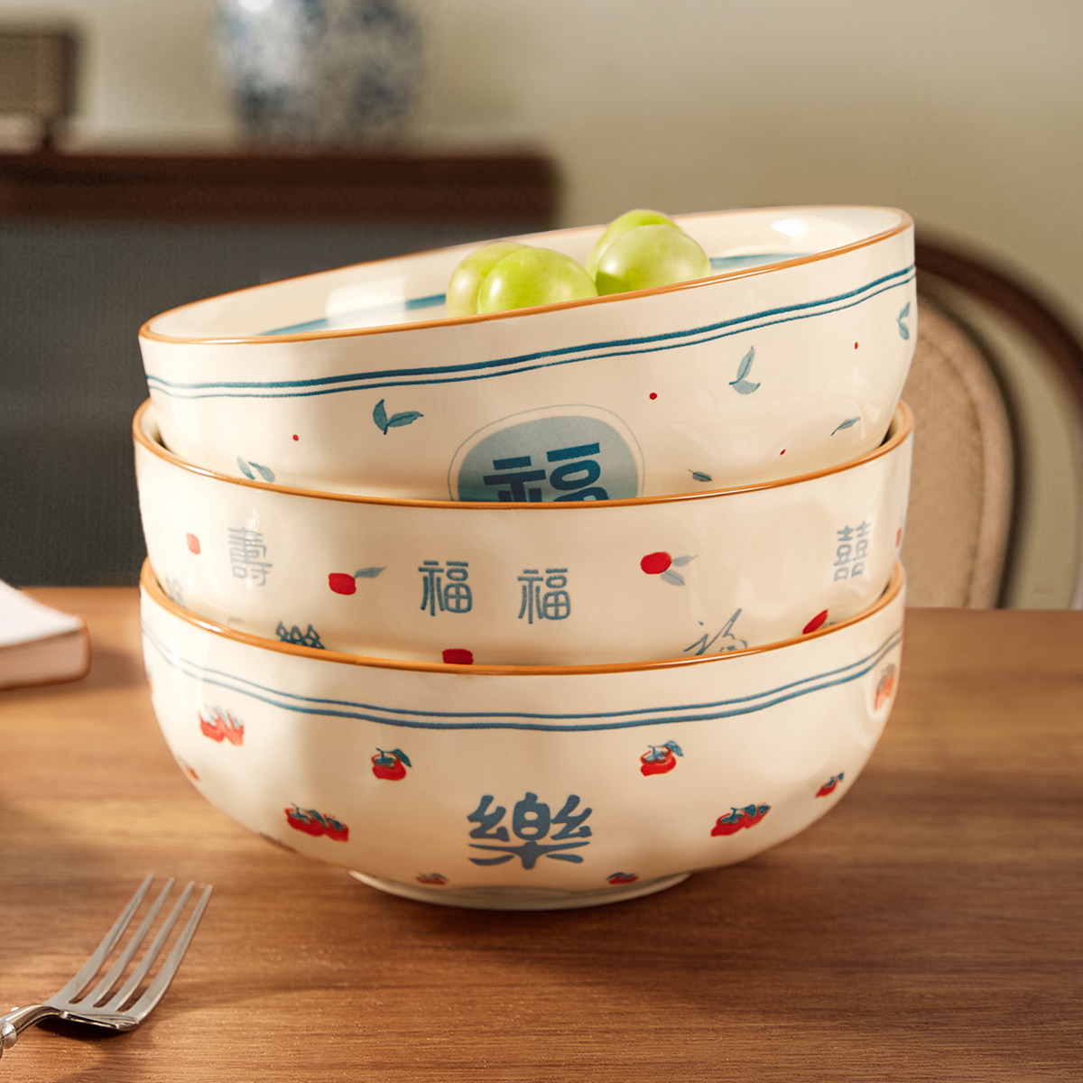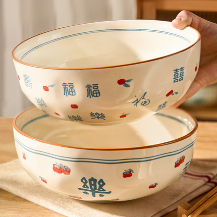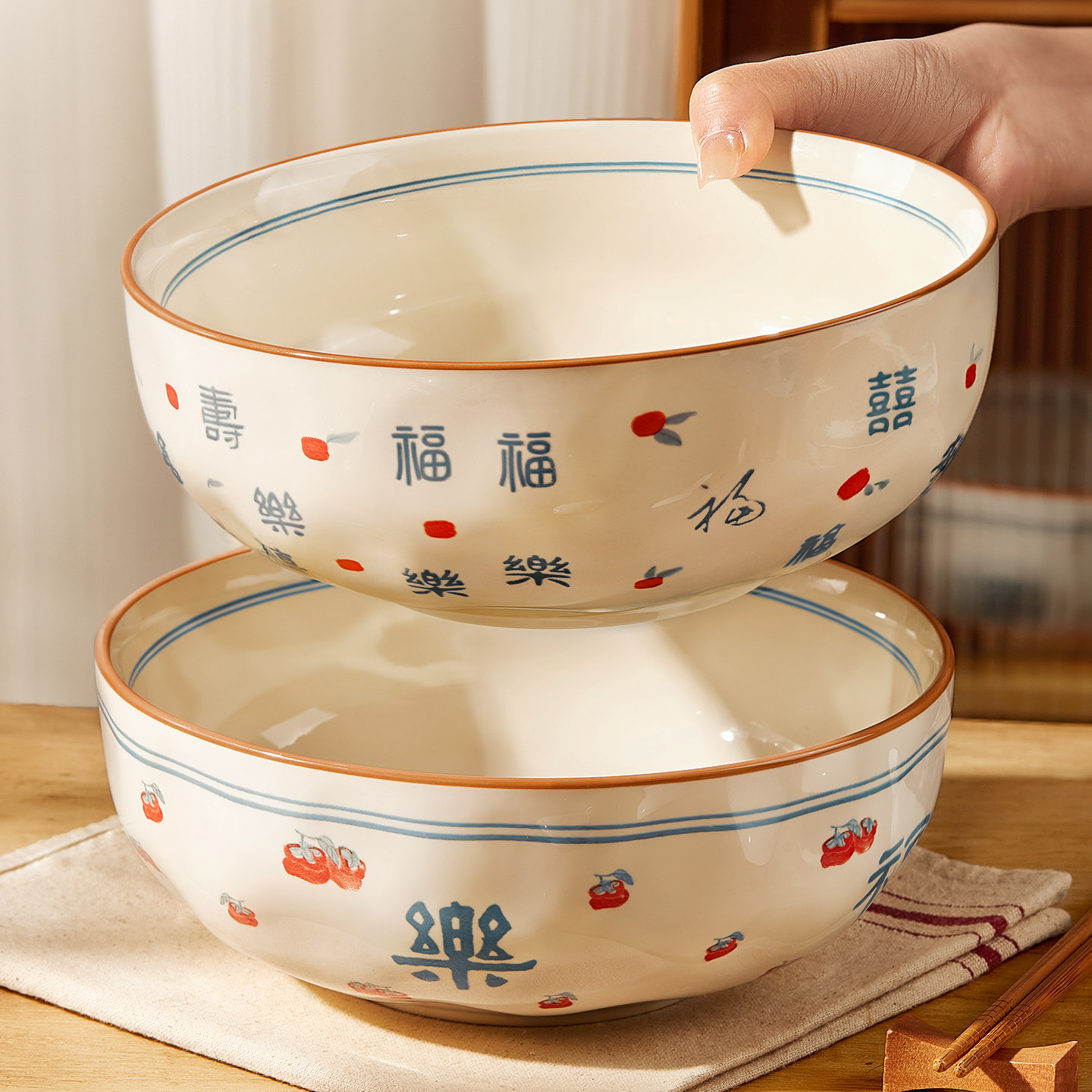 中式陶瓷汤碗大碗家用2026新款釉下彩8英寸大号汤面碗高颜值盘子