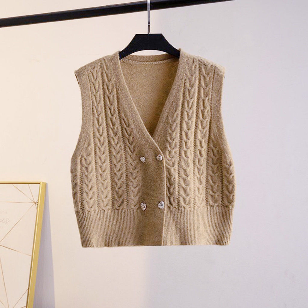 双排扣开衫马甲外套春秋季外搭叠穿短款背心宽松针织纯色坎肩马甲