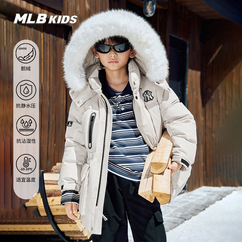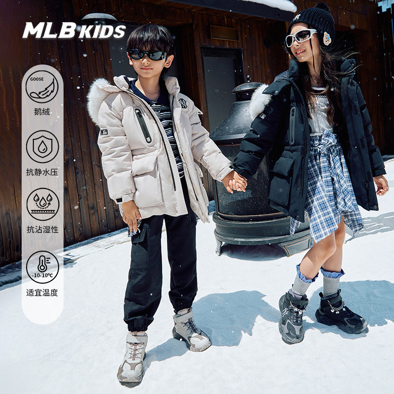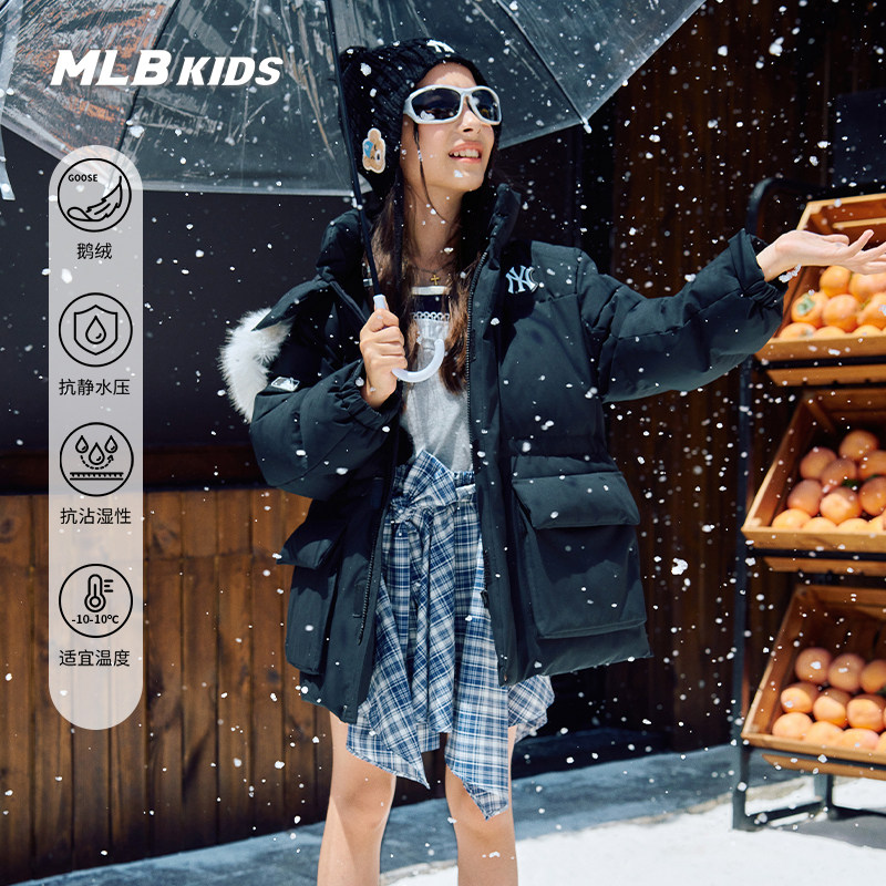 MLB儿童官方男女童防水连帽可拆卸中长鹅绒工装羽绒服25秋冬新款