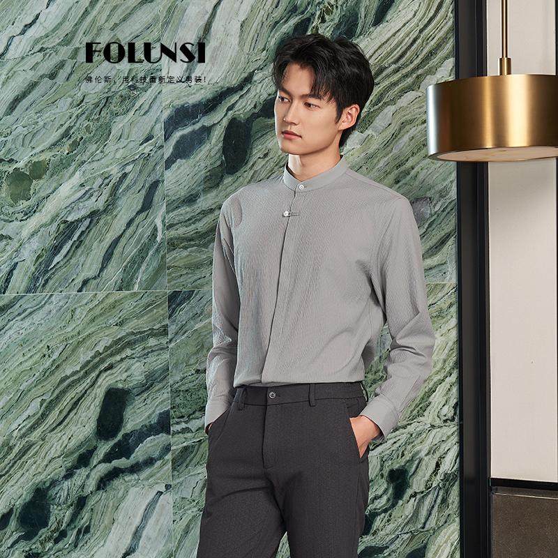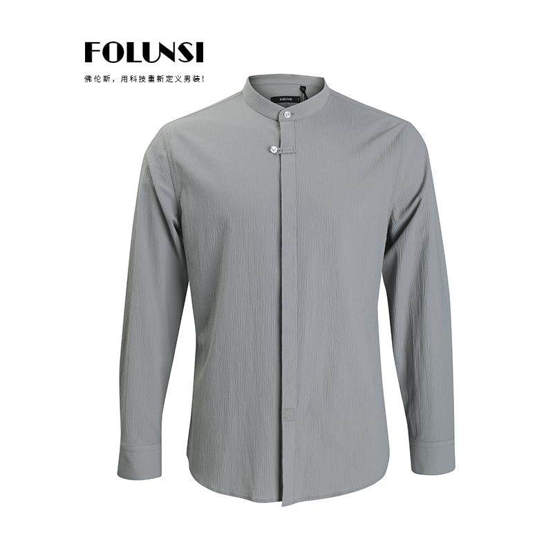 佛伦斯FOLUNSI男衬衣春秋款男士休闲中式立领2024透气长袖衬衫男