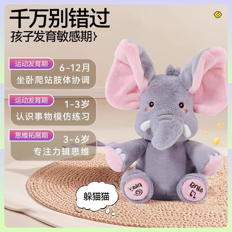 新款儿童玩具大象玩具婴儿到岁躲猫猫毛绒公仔耳朵会动儿童安抚小