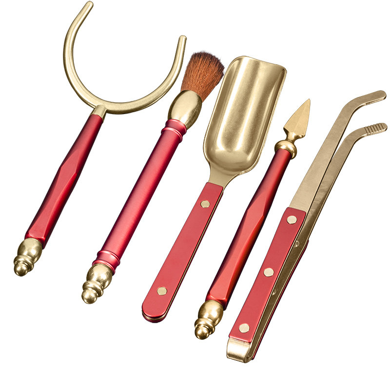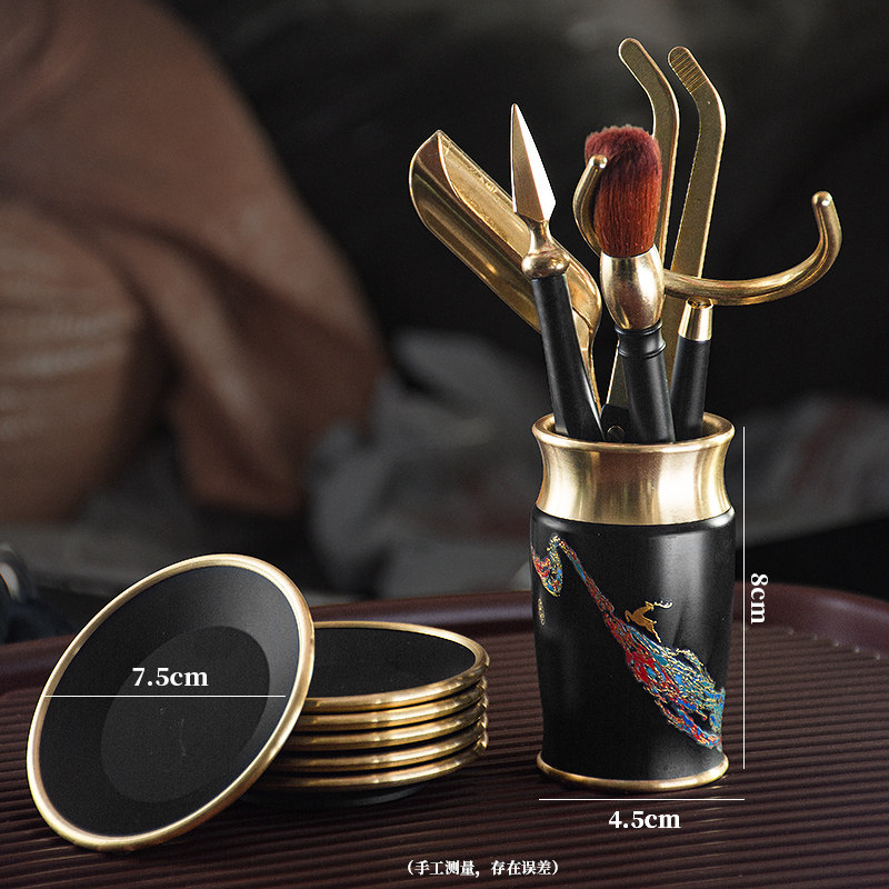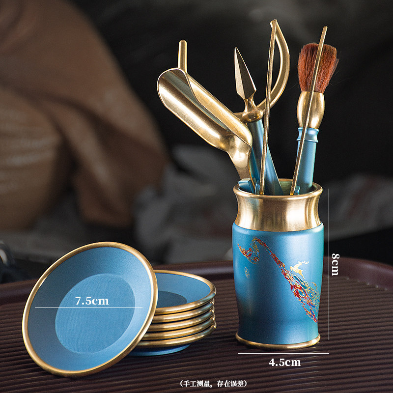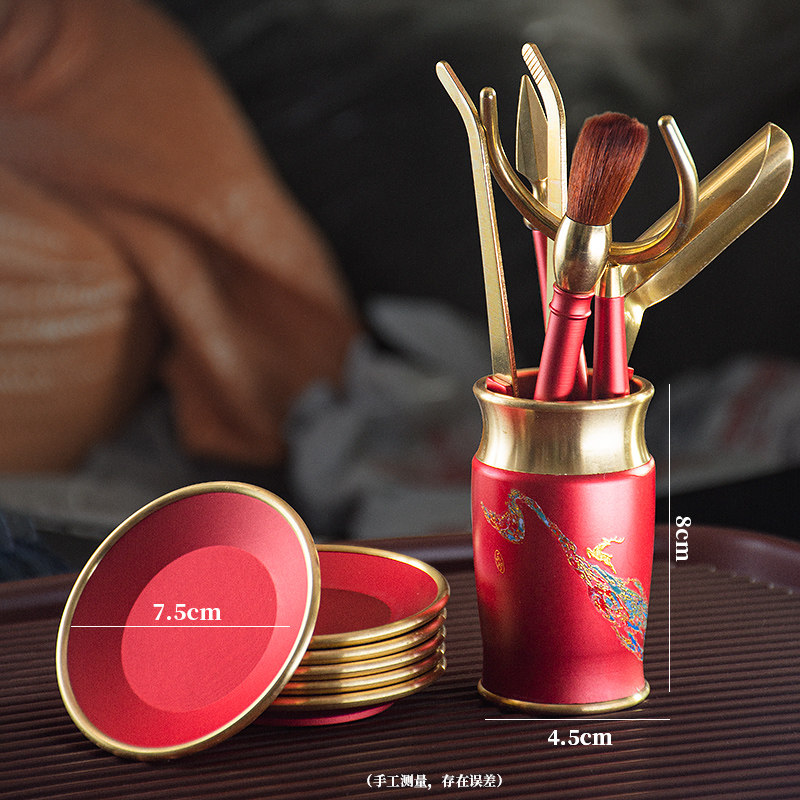 茶道黄铜六君子功夫茶具配件套装茶夹茶刀茶洗日式水盂禅意6君子