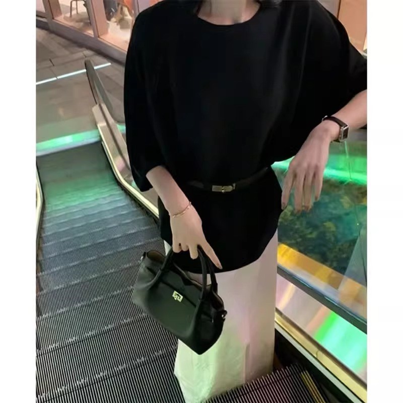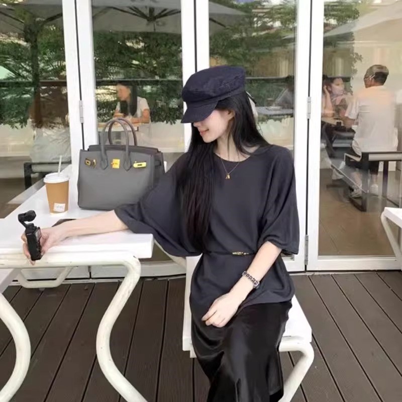 法式圆领冰丝短袖针织衫女夏季设计感小众老钱风宽松收腰半袖上衣