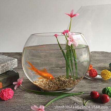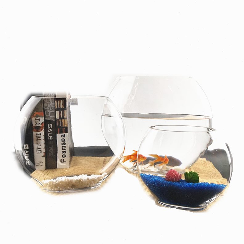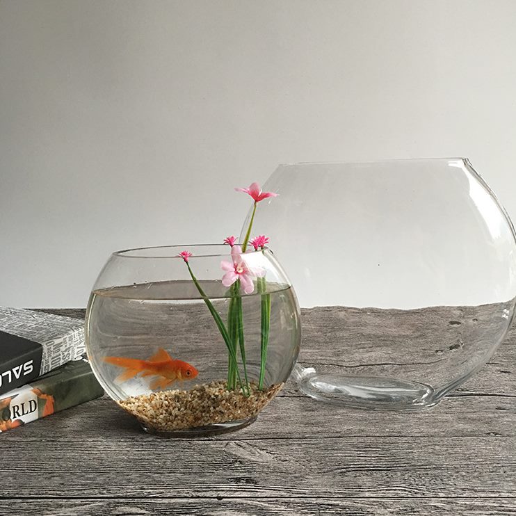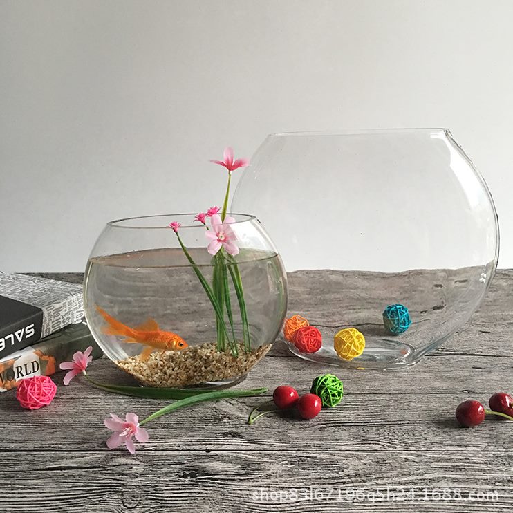 玻璃鱼缸水培花瓶绿植玻璃口缸微景观家居摆件创意透明扁